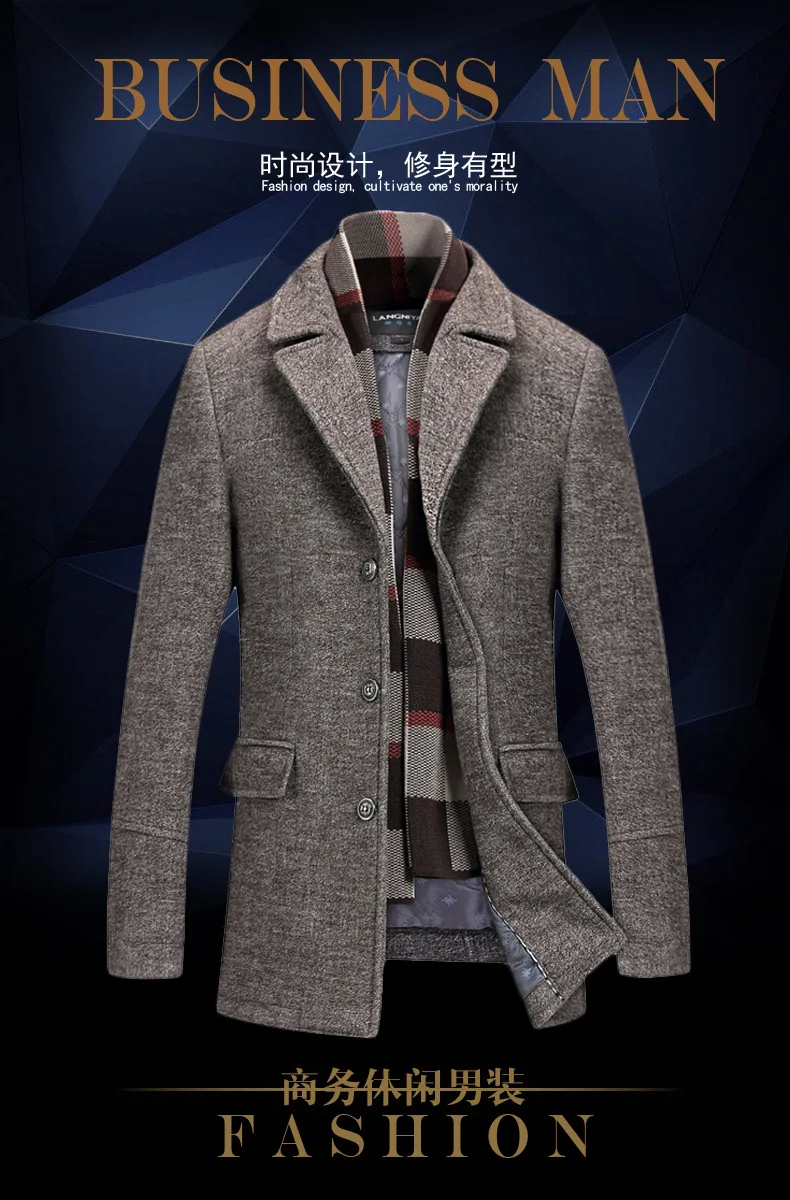 Men's autumn and winter thick wool woolen coat men's business self-cultivation in the long section of warm men's youth windbreaker 2019