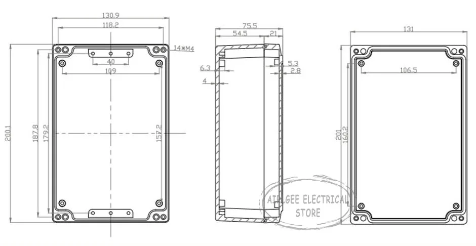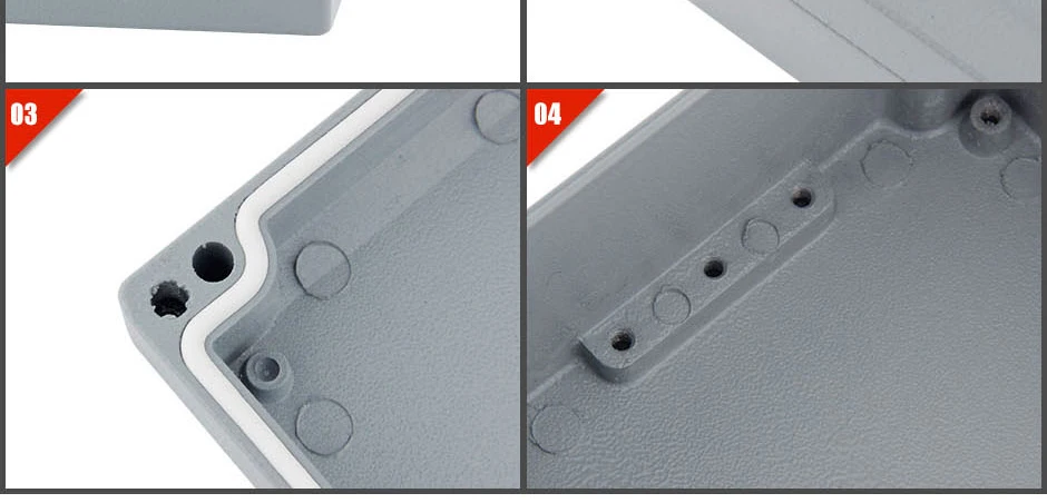 В нижней части коробки есть несколько монтажных отверстий для легкого крепления электронных компонентов, таких как клеммы, рельсы и доски.