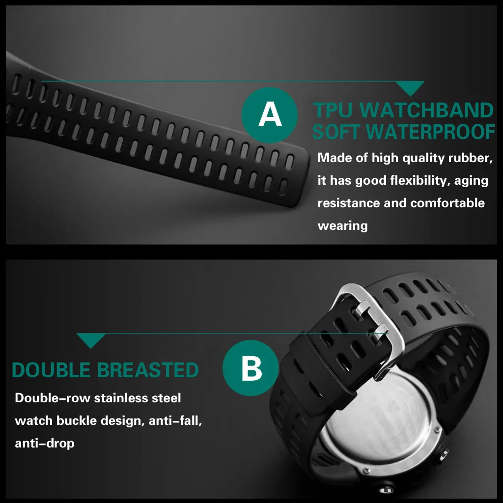 Наружные многофункциональные спортивные часы, мужские классические секундомер, электронные светодиодный наручные часы с подсветкой, 50 м глубокие водонепроницаемые цифровые часы