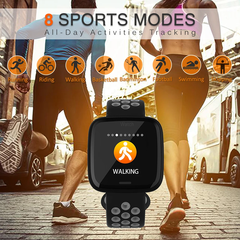 Отслеживание активности в течение всего дня: Встроенные новейшие оптические датчики, Часы будут записывать ежедневные шаги, калории, расстояние. Между тем, он имеет несколько спортивных режимов, таких как ходьба, бег, Велоспорт, баскетбол, бадминтон, футбол, плавание и проскакивание.