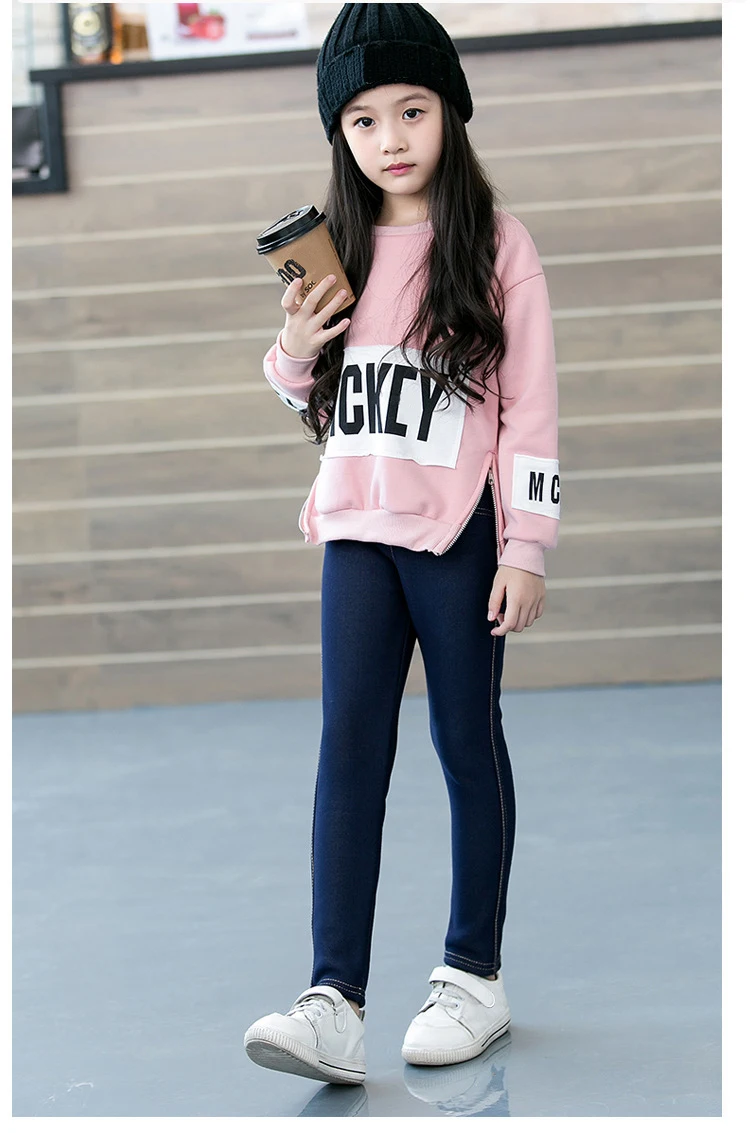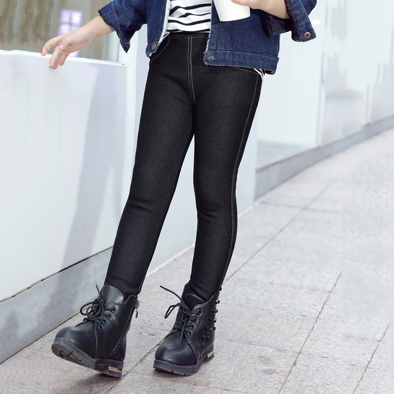 Подростковые зимние штаны для девочек, флисовые джинсы детские теплые узкие брюки; Детские зимние леггинсы для девочек-От 3 до 12 лет Девушки Trausers