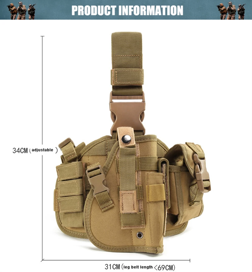-Многофункциональная тактическая кобура для бедра, подходит как для правой, так и для левой руки -Используется для хранения пистолета, пистолета -Можно прикрепить на запястье и прикрепить к ноге -Полностью регулируемый дизайн для Дополнительной посадки и безопасности -Регулируемые нескользящие лямки для ног позволяют минимизировать движение и обеспечить максимальный комфорт -БЫСТРОРАЗЪЕМНАЯ Пряжка и ремешок на липучке делают эту кобуру полностью регулируемой -Идеально подходит для военных, правоохранительных органов, охотников