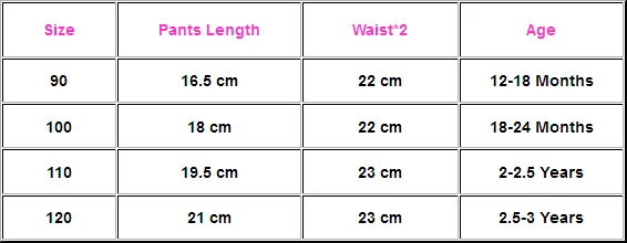 Материал:Хлопок, спандекс и полиэстерРазмеры таблицей: