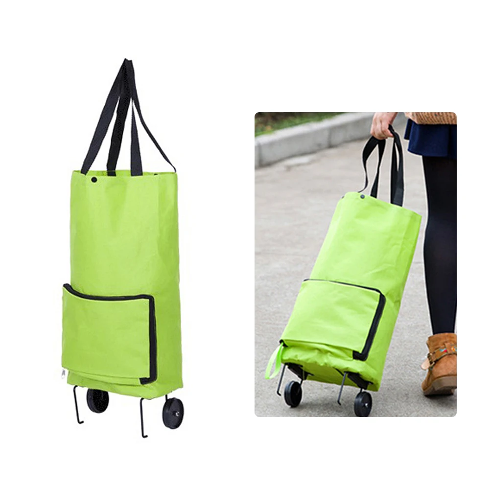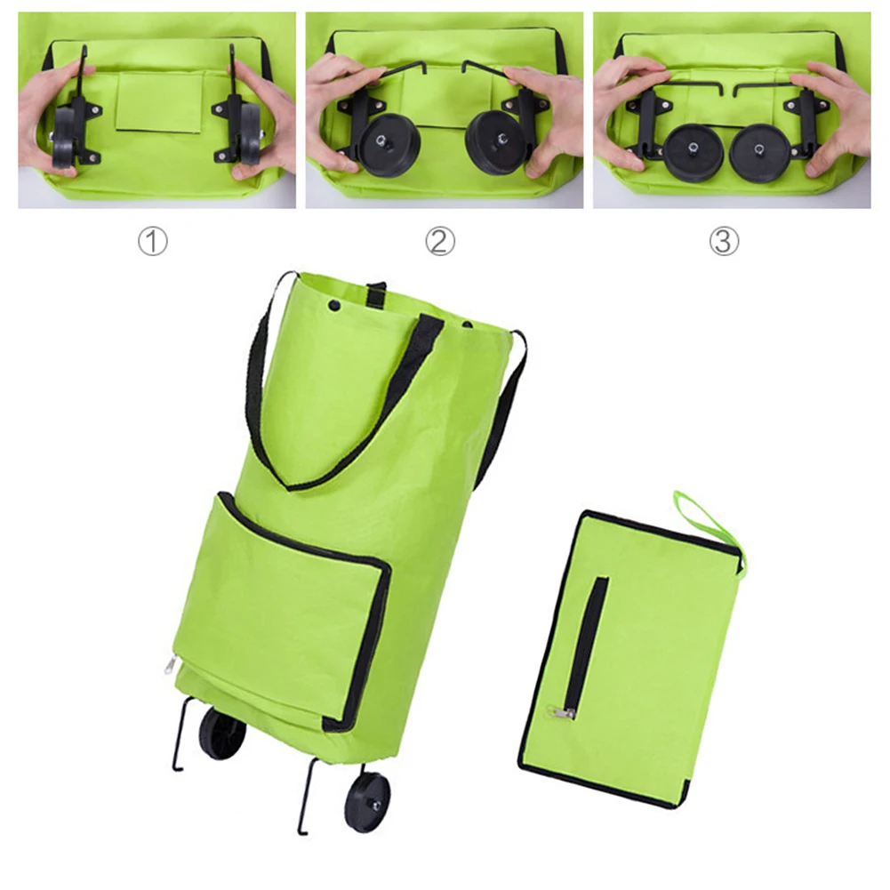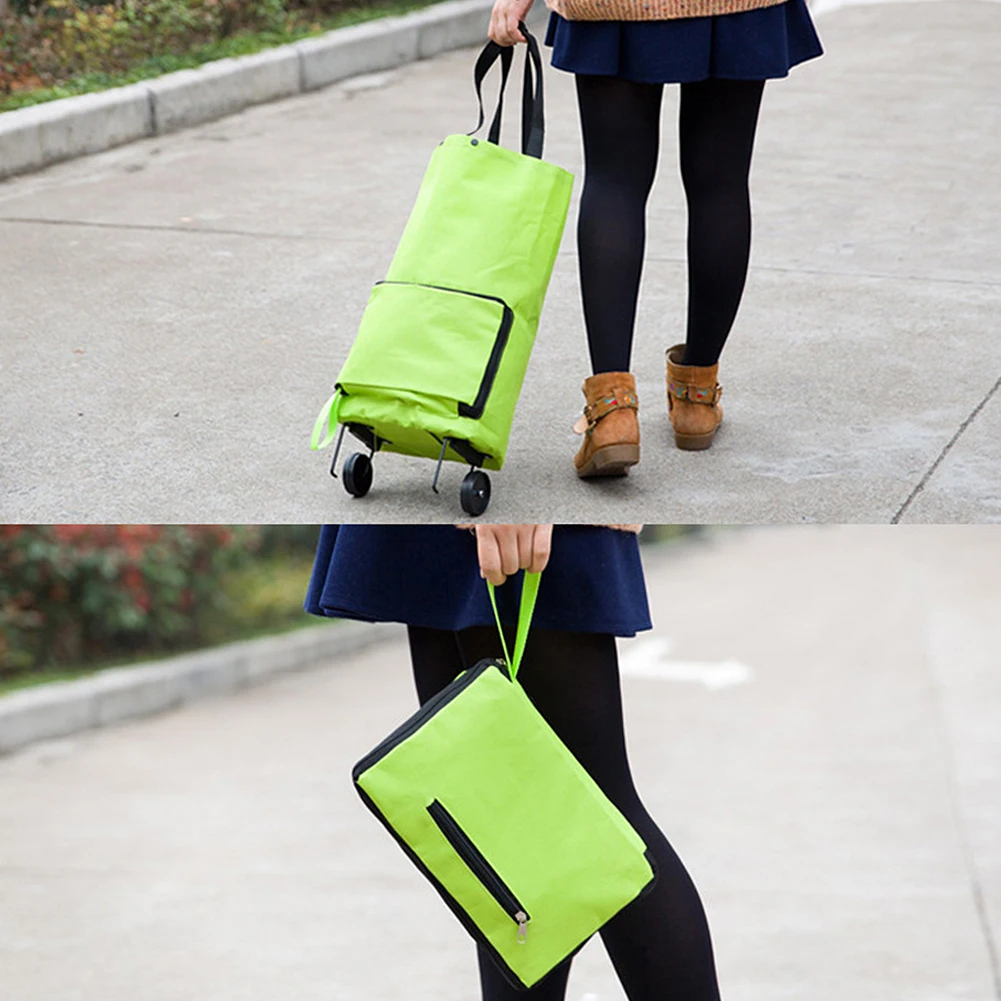 Portable Folding Shopping Bag Shopping Cart With Wheels Small Pull Cart Women Buy Vegetables Bag Oxford Cloth Shopping Organizer