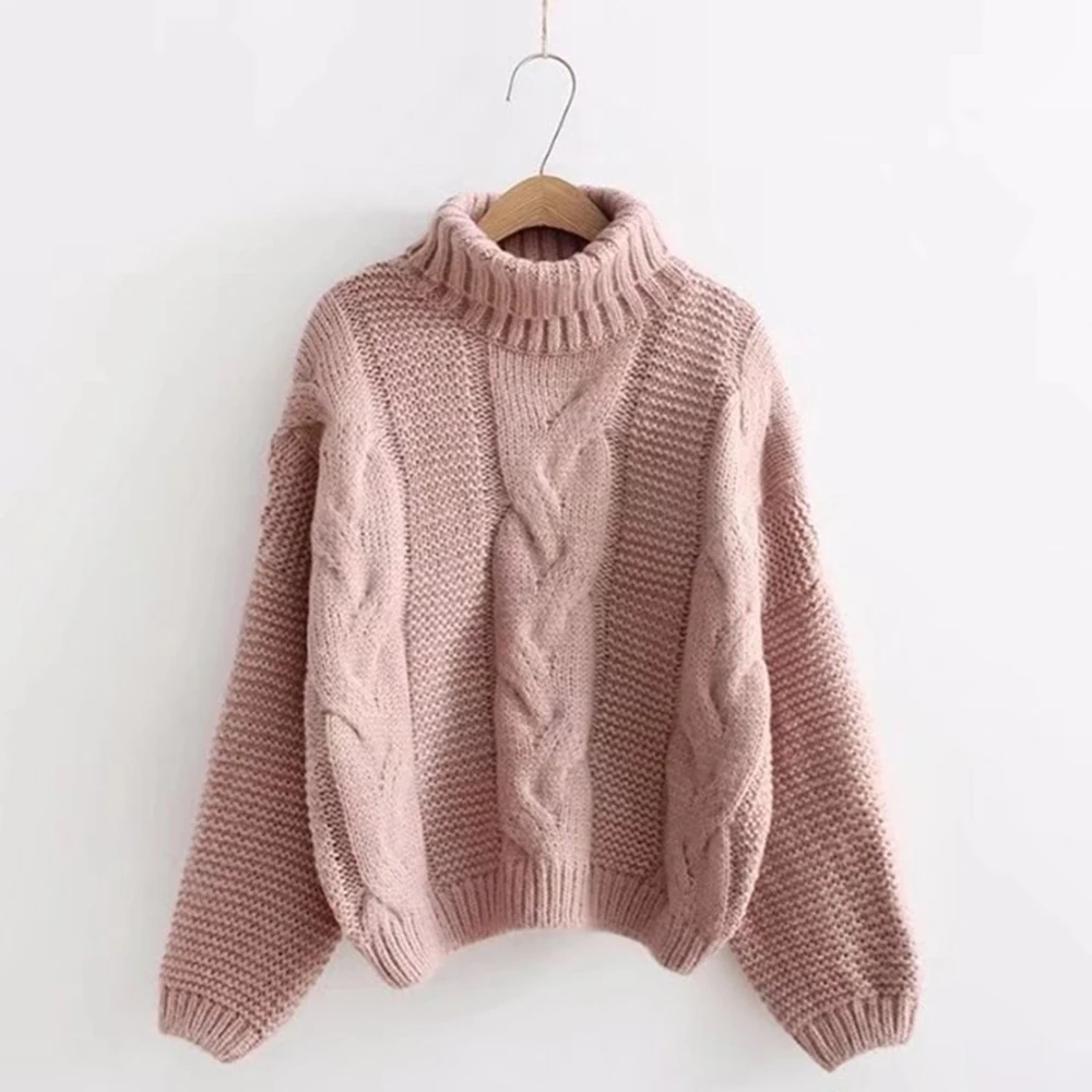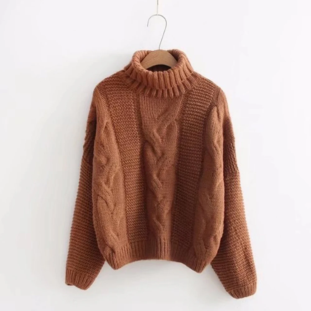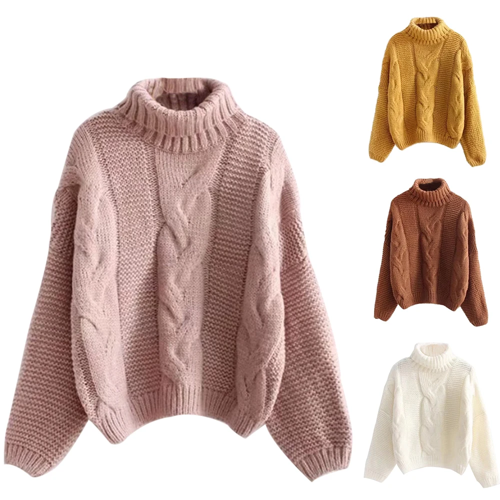 Осенний однотонный вязаный пуловер с высоким воротником и длинными рукавами, сохраняющий тепло свитер для женщин