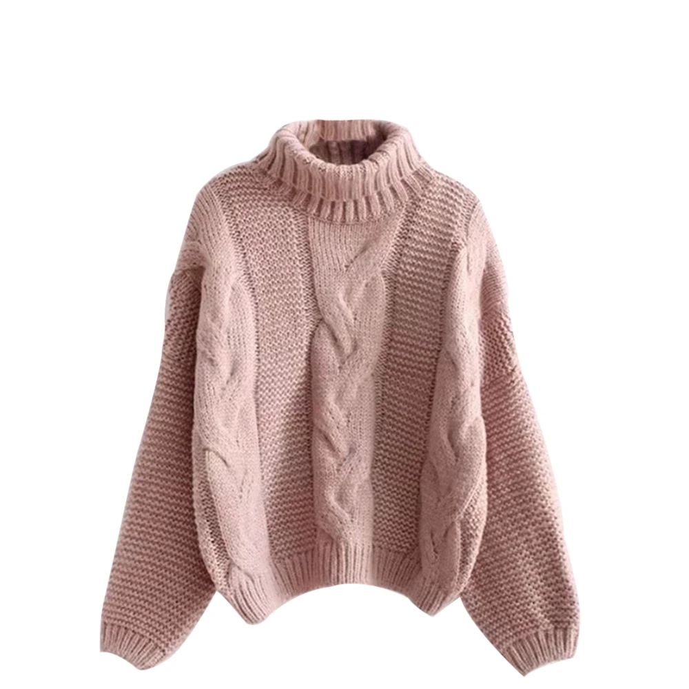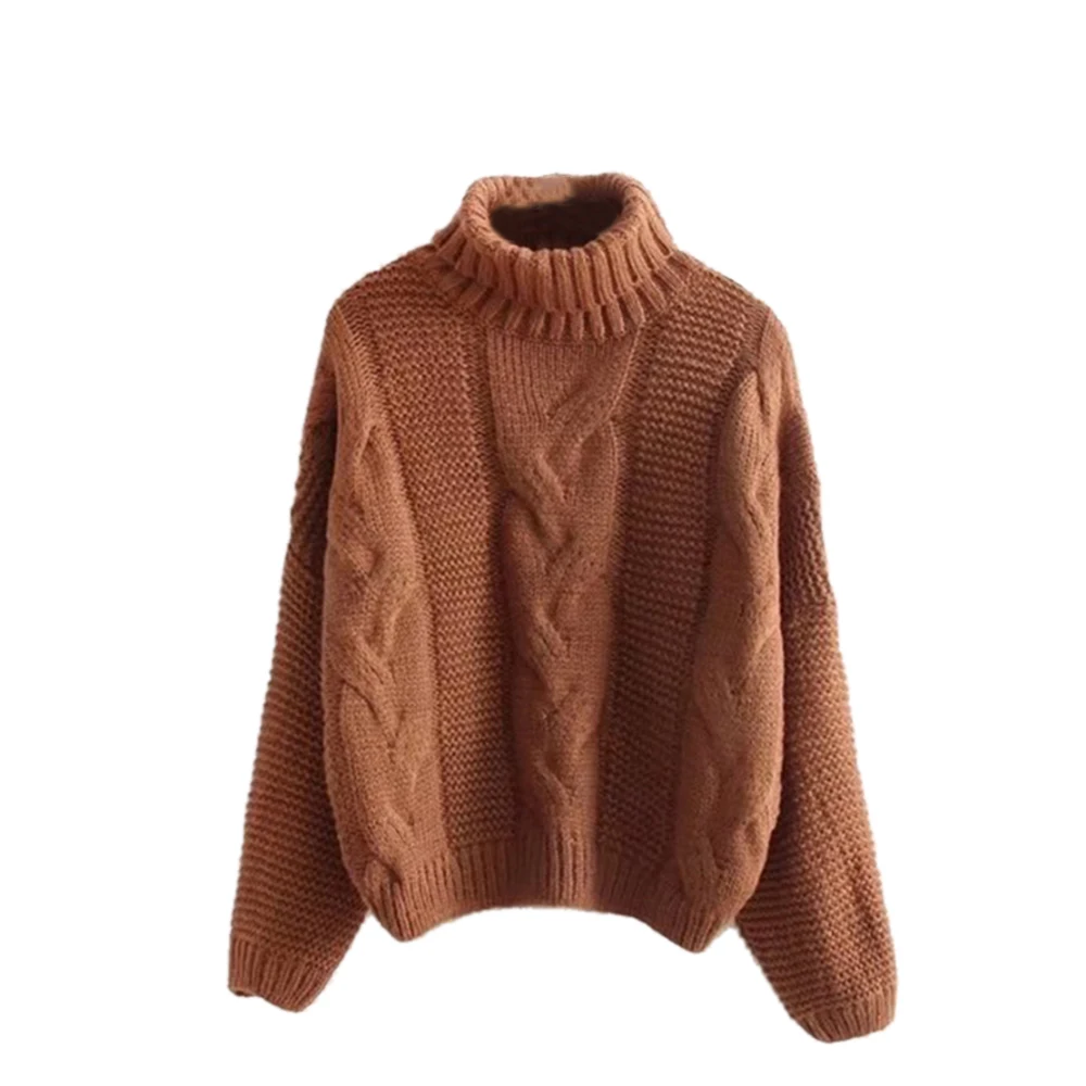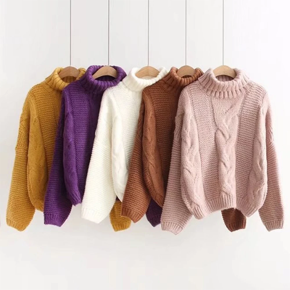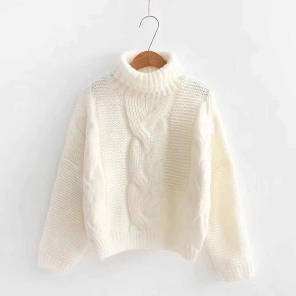 Осенний однотонный вязаный пуловер с высоким воротником и длинными рукавами, сохраняющий тепло свитер для женщин