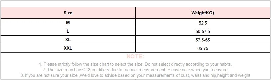 Размеры Бедро (cм) Обхват груди (cм) Длина брюк (см) Талия (см) S 122 114 32 114 М 128 120 33 120 L 134 126 34 126 Примечание: 1. При выборе размера, пожалуйста, строго следуйте размерной сетке. Не выбирайте непосредственно в соответствии с привычкой.