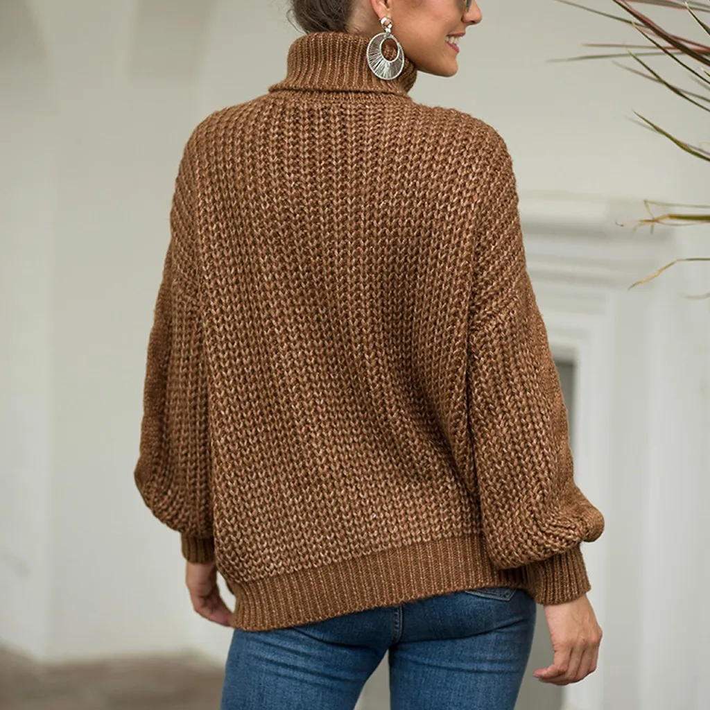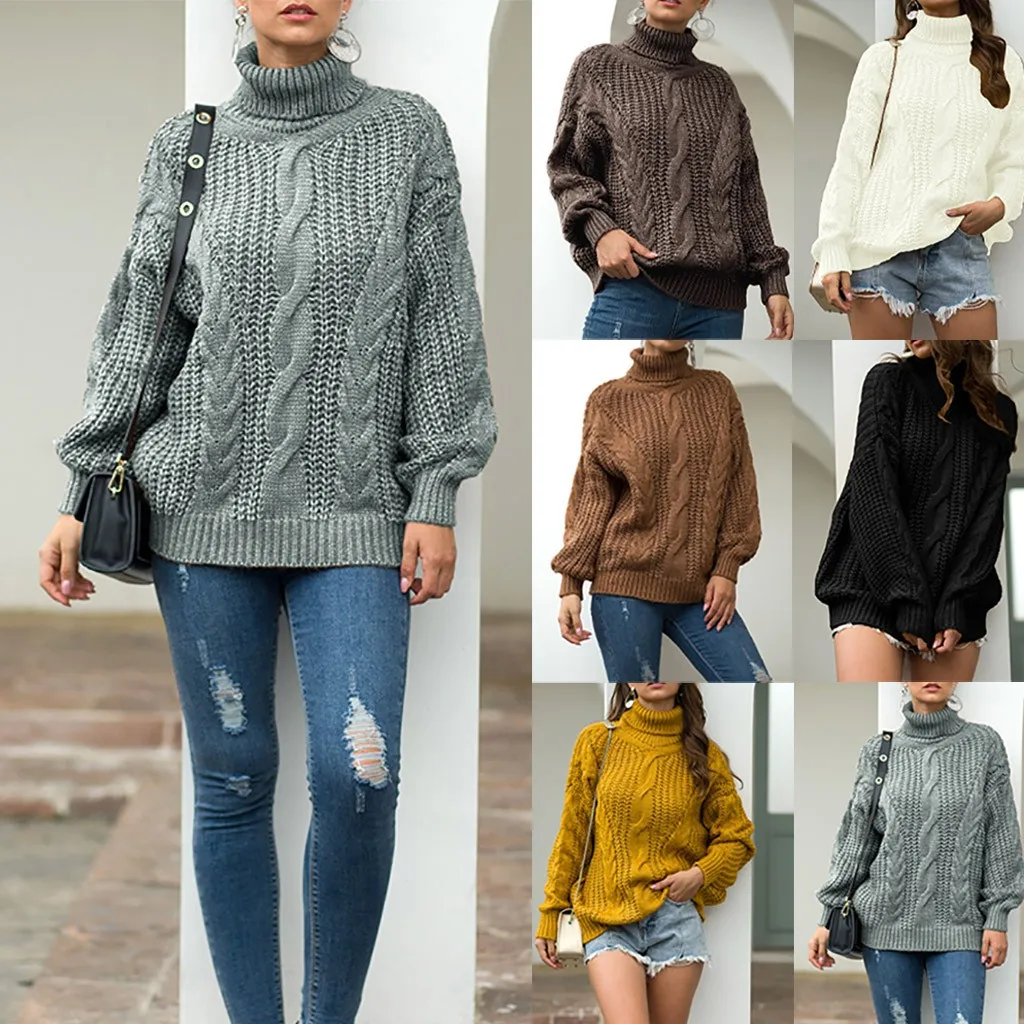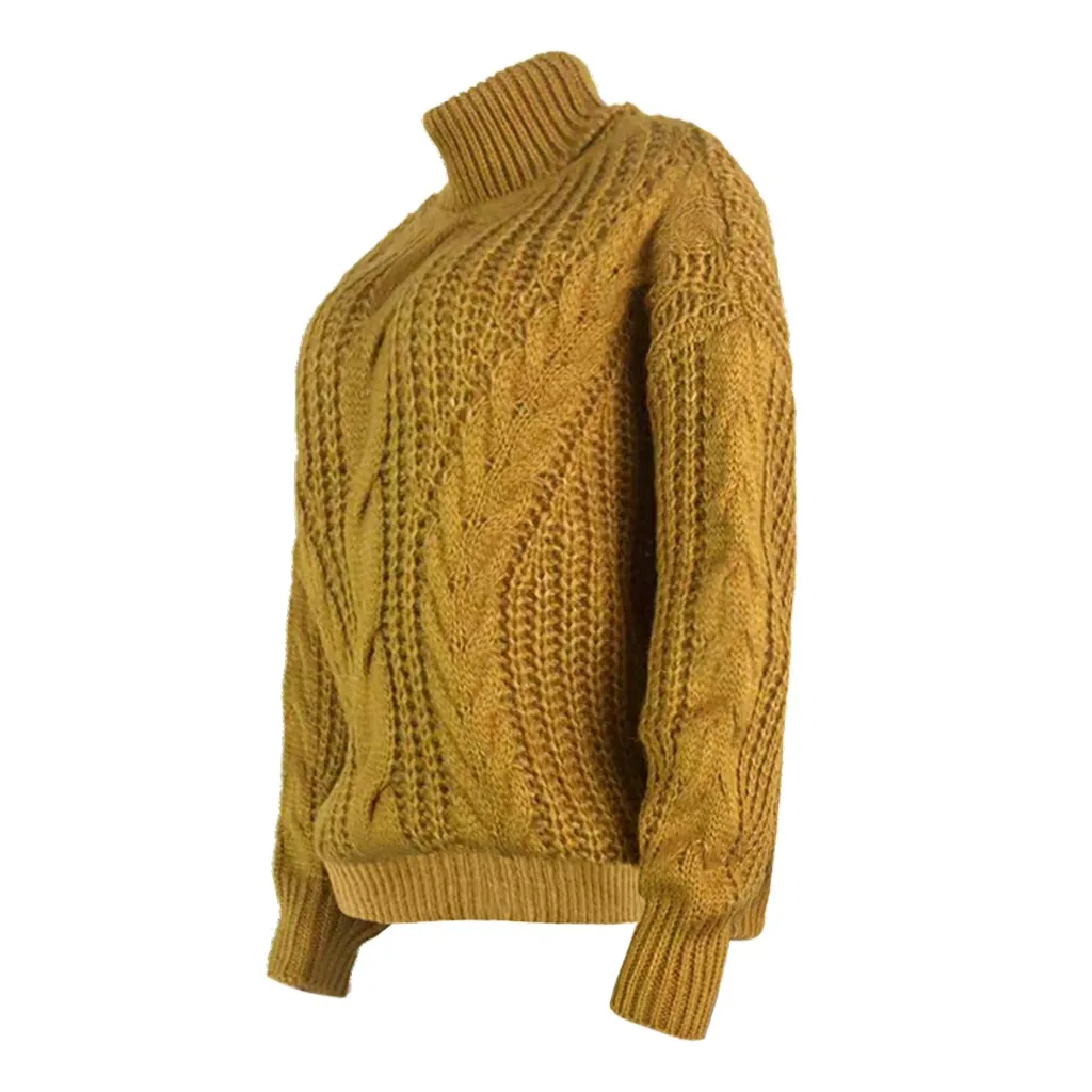 Женская Повседневная Водолазка пуловер с длинным рукавом сплошной Свободный вязаный свитер Топы