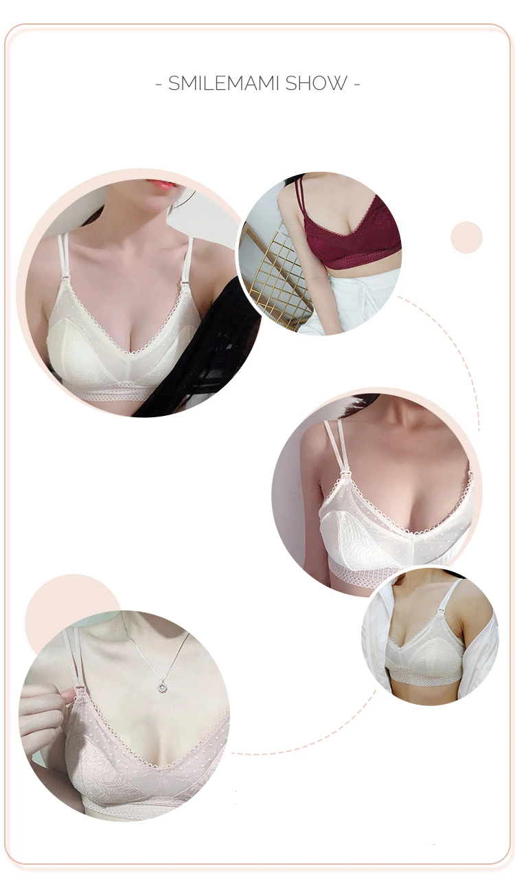 Бюстгальтер для кормления с мягкими чашечками и кружевными деталями; Спереди клипса вниз с внутренними стропами для легкого кормления грудью; Двухслойная эластичная сетка вдоль крыльев для посадки и комфорта; Регулируемые двойные ремни и застежка сзади; Широкий пояс под грудью обеспечивает хорошую поддержку