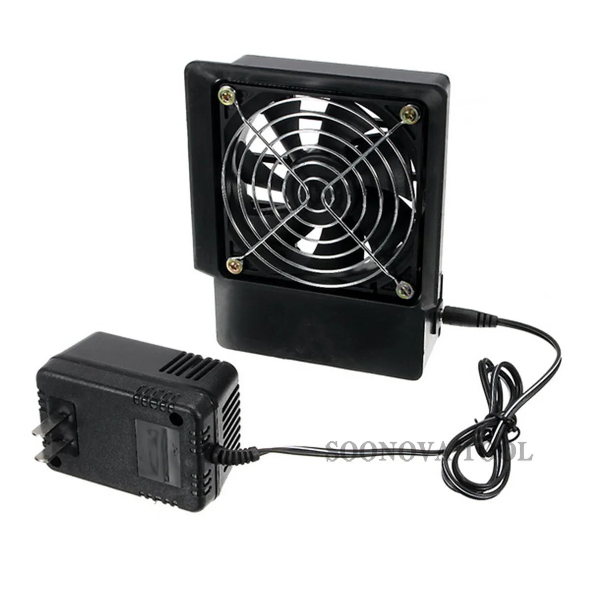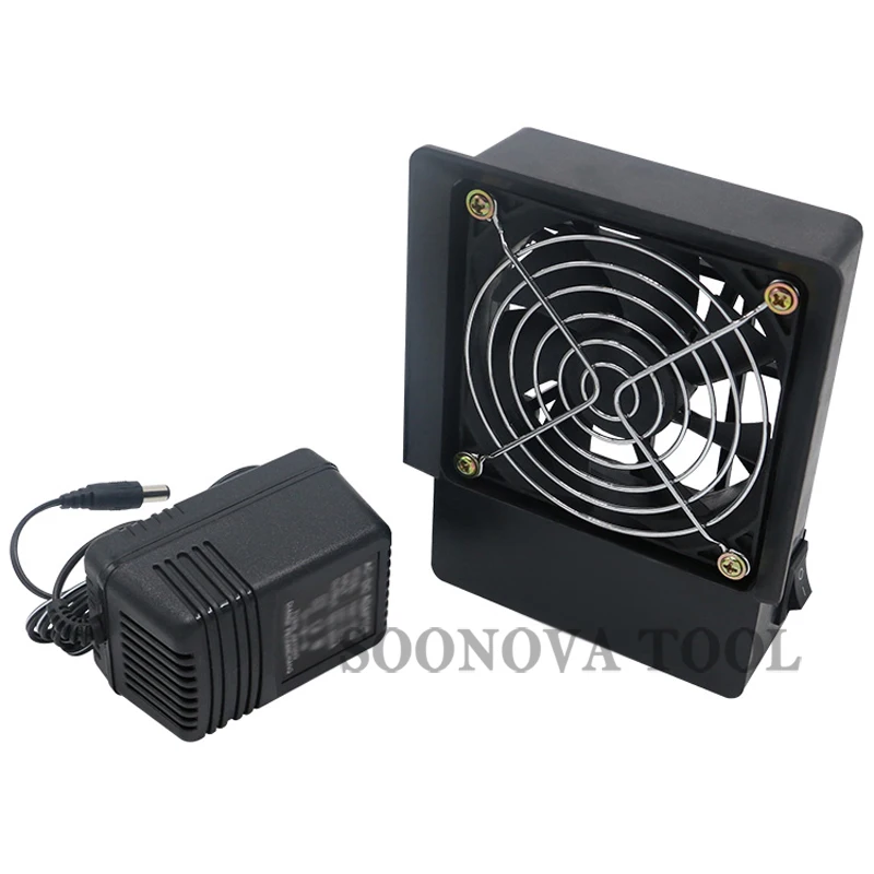 Features: It can easily adsorbed and fixed onto an iron, with a switch, with a 12V power supply. Smoking device used to prevent absorption of toxic lead. Compact, easy to move; Smooth operation, low noise.