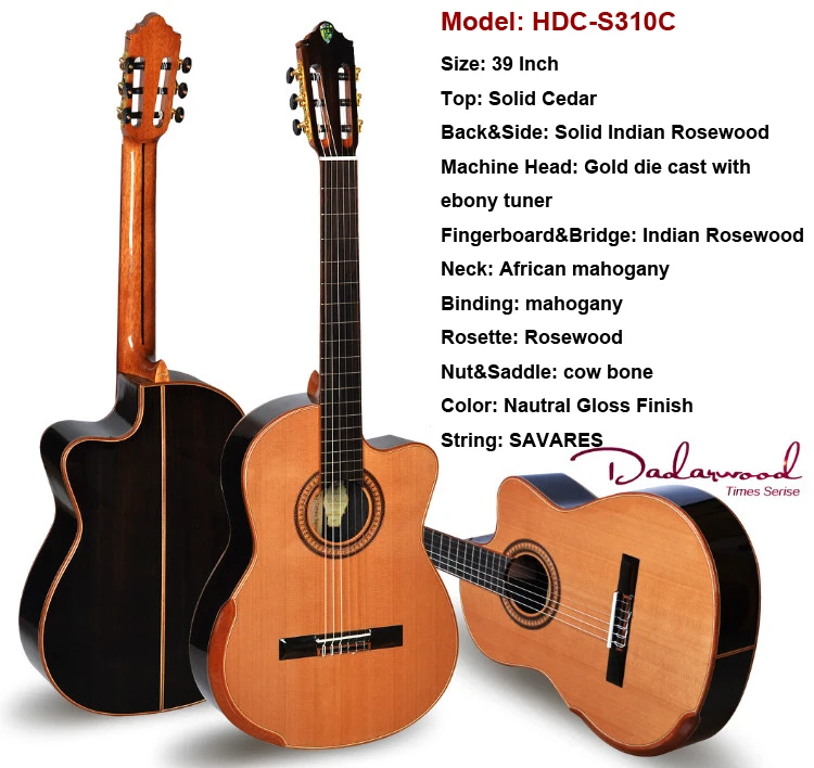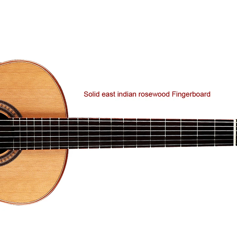 it's made solid canadian cedar top,solid indian rosewood back and side, rosewood fingerboard, Neck is made from Mahogany , useing mahogany binding, The string action very low, very easy to play this guitar,
