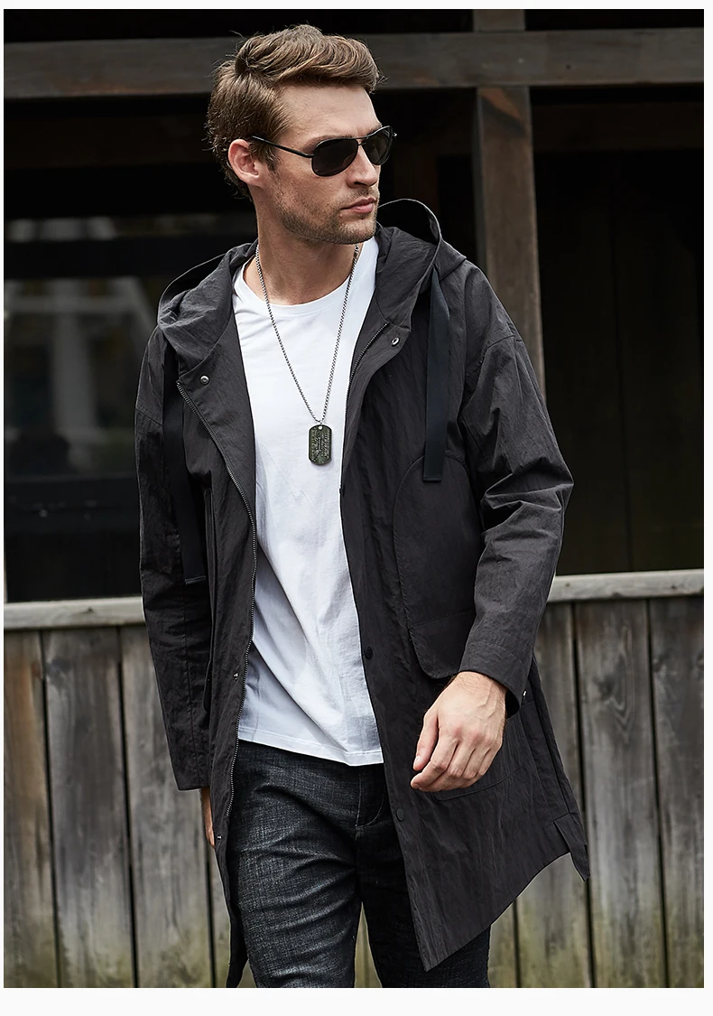 2019 Осень Зима ветровка мужская длинная куртка молодежная с капюшоном Повседневная Свободная куртка большого размера тренд Высокая уличная колледж Ветер