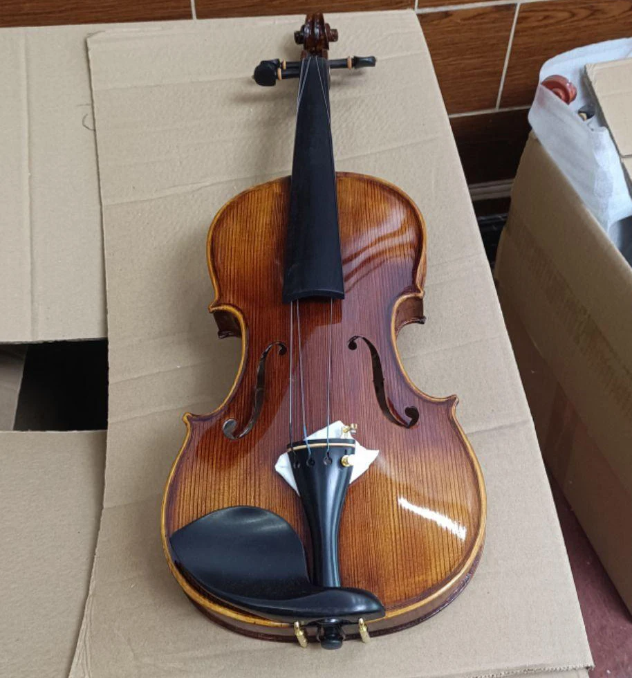 Скрипка ручной работы 4/4 3/4 из цельного дерева с тигром темно-коричневая Скрипка для начинающих Профессиональный струнный инструмент с бразильским бантом Бесплатная доставка