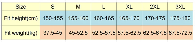 Пожалуйста, выберите размер женской спортивной одежды в соответствии с ростом (см) и весом (кг),
