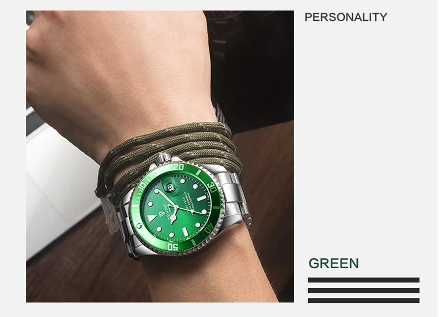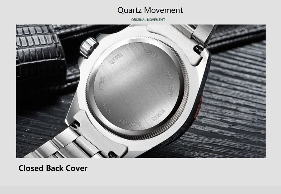 Основные точки Особенности: светящиеся стрелки, полный календарь Поверните циферблат: внешнее кольцо циферблата можно выбрать по часовой стрелке Застежка браслета: одна Складная Пряжка, легко носить Кварцевый механизм: точное время, несколько лет службы Материал зеркала: зеркало из минерального армированного стекла, устойчивое к царапинам, огнестойкое Чехол и Материал ремешка: нержавеющая сталь 316, устойчивая к коррозии, подходит для кожи Водонепроницаемость: 30 м Водонепроницаемость, допускается падение воды и дождь, ручная стирка, без купания и ванны Спецификация: Диаметр: 43 мм, толщина: 14 мм, Окружность: 230 мм, ширина: 20 мм, Вес: 115 г