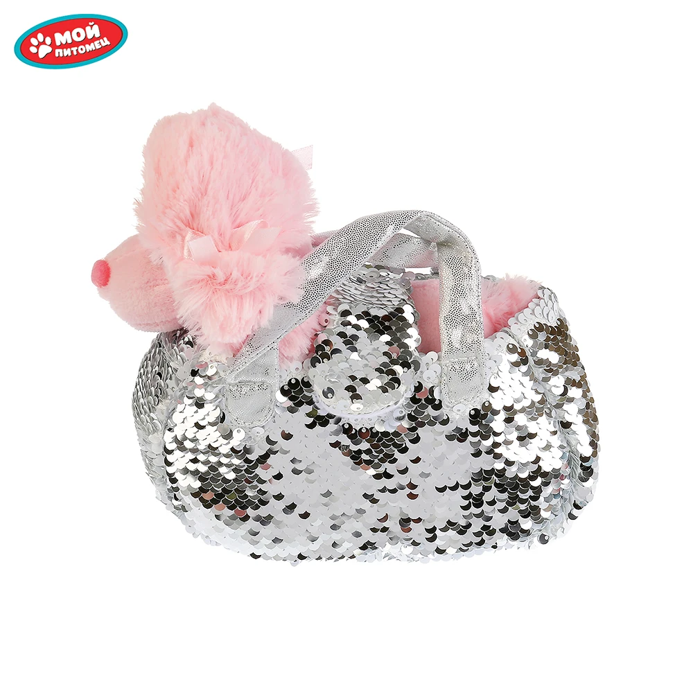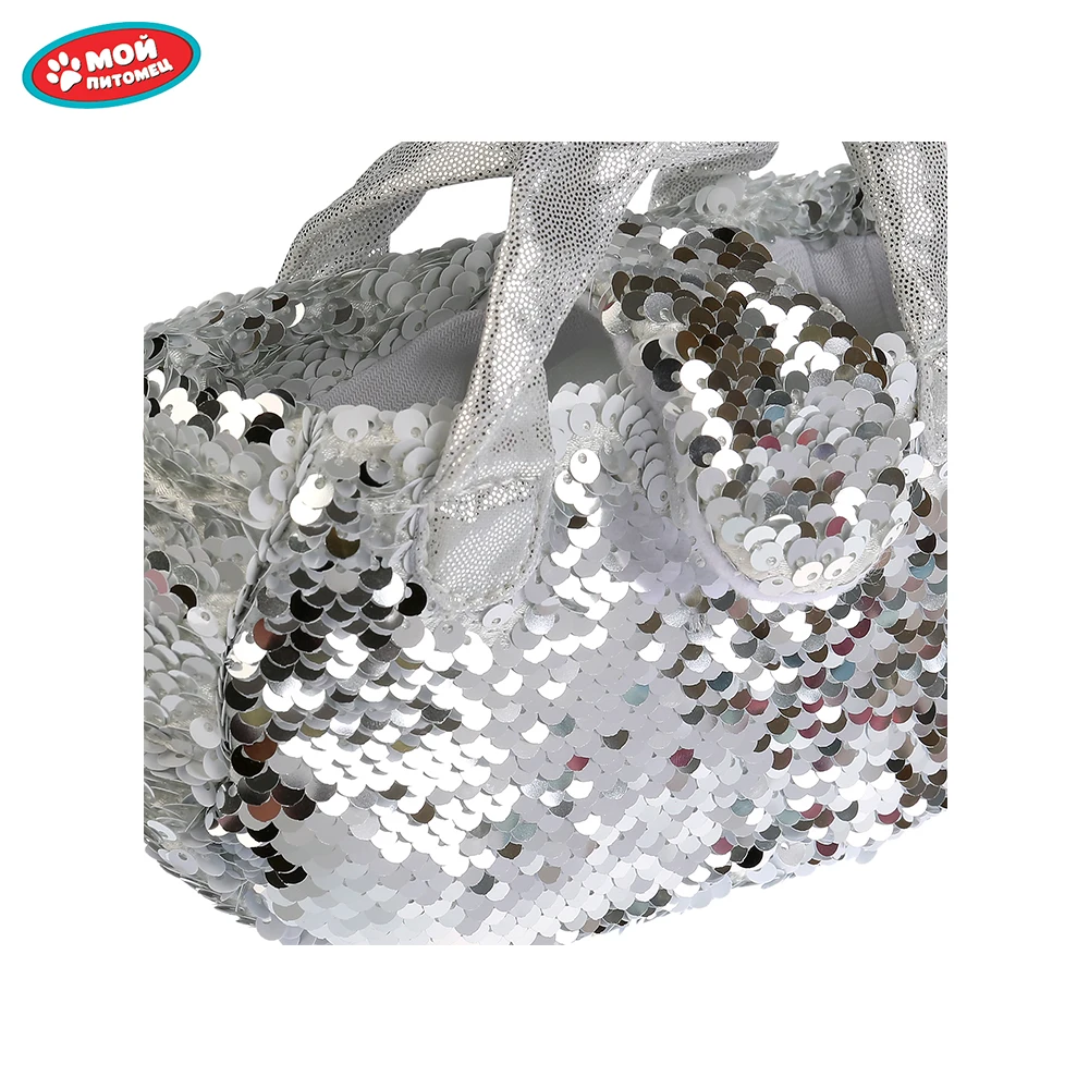 - два в одном: питомец + сумочка для него с блестящими золотыми пайетками