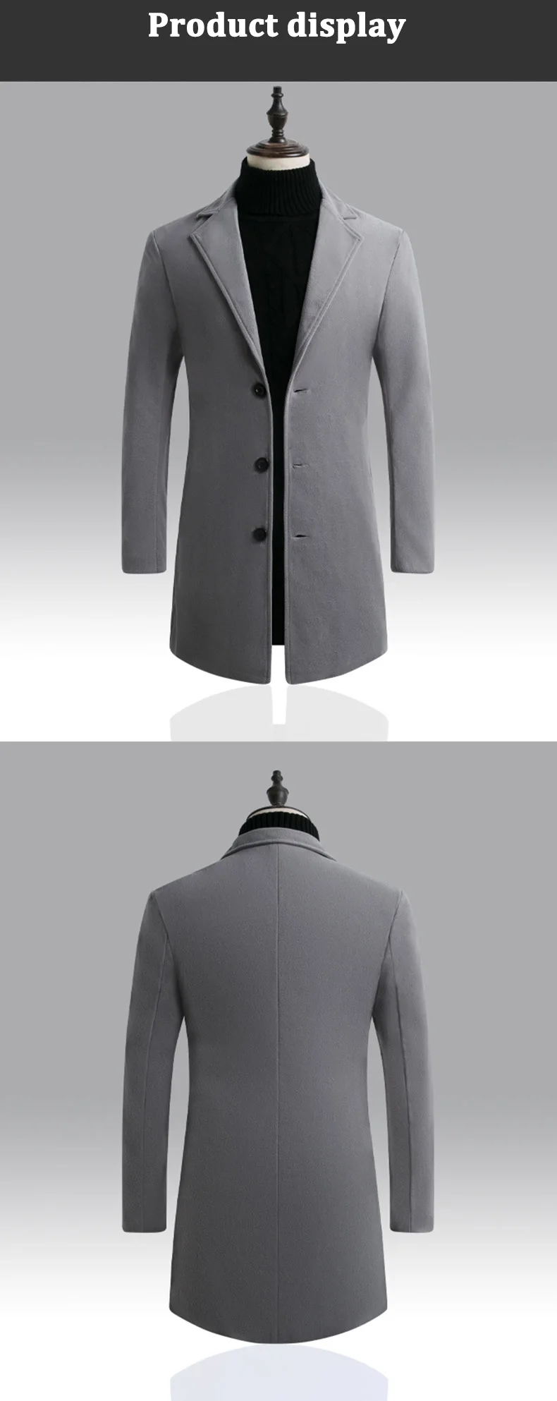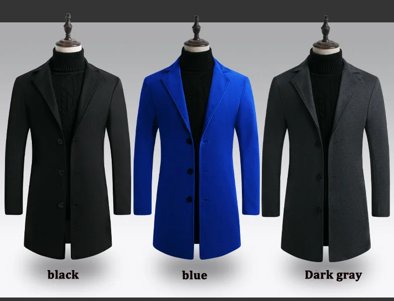 2019 осенне-зимняя Длинная ветровка мужская шерстяная Однорядная куртка с отворотом и тремя пряжками тонкая Длинная новая однотонная Повседневная модная куртка