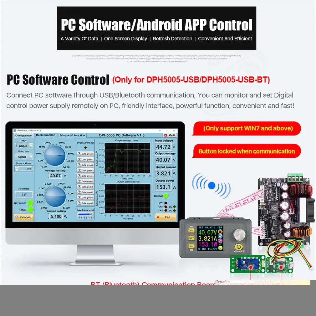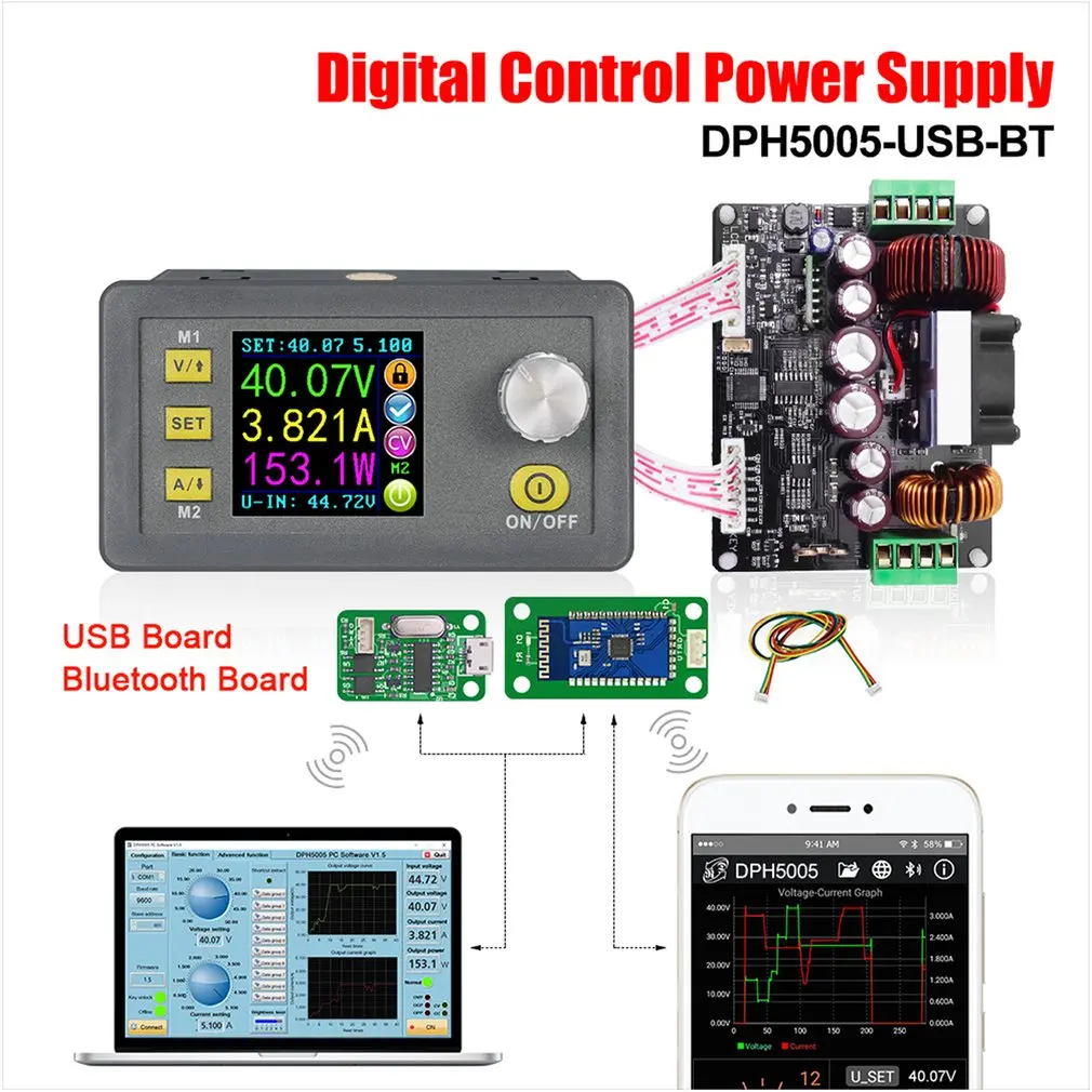 DPH5005-USB-BT понижающий преобразователь постоянного напряжения тока программируемый цифровой контроль источник питания цветной ЖК-вольтметр