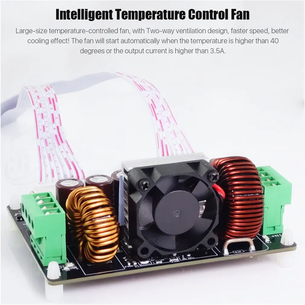 5. Высокая производительность: программируемый модуль постоянного напряжения и понижения тока имеет Умный вентилятор, который имеет тепловыделение, может лучше контролировать температуру.