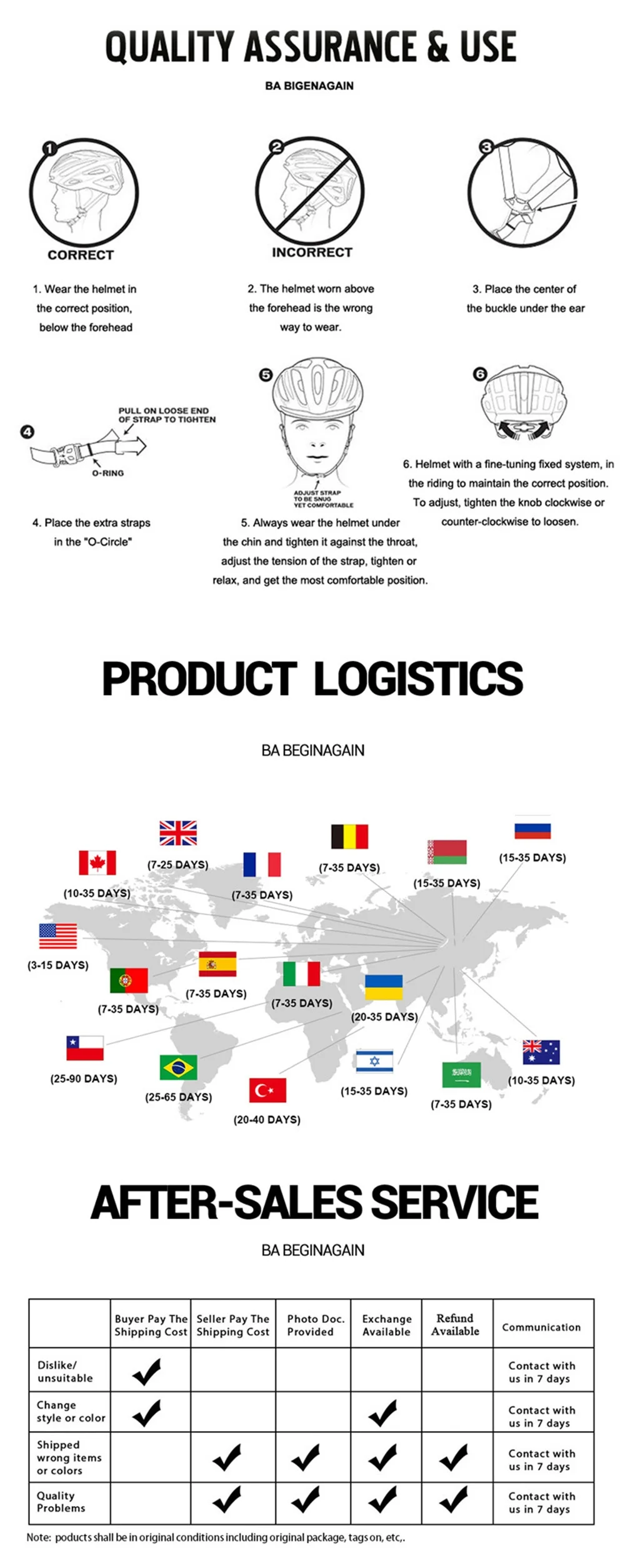 4. Buyers are responsible for return postages if the problems are caused by your side.