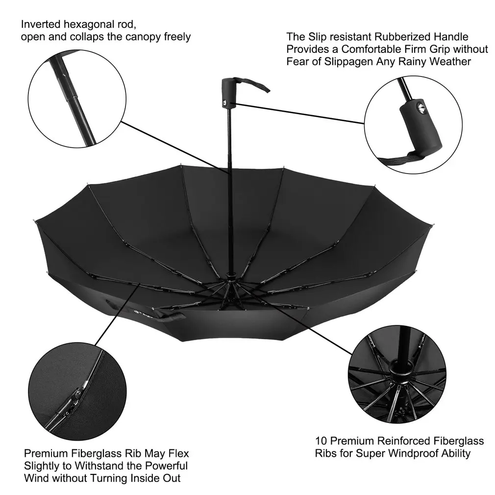 Превосходный дождевик: навес изготовлен из 210 T ткань эпонж, что делает его хорошим водонепроницаемым. Зонт для путешествий защищает вас в сужающемся пуховике с высококачественным навесом, покрытым водонепроницаемой технологией. Вода не замачивается, а вместо этого выскакивает и выскакивает, предотвращая утечку с другими зонтиками.