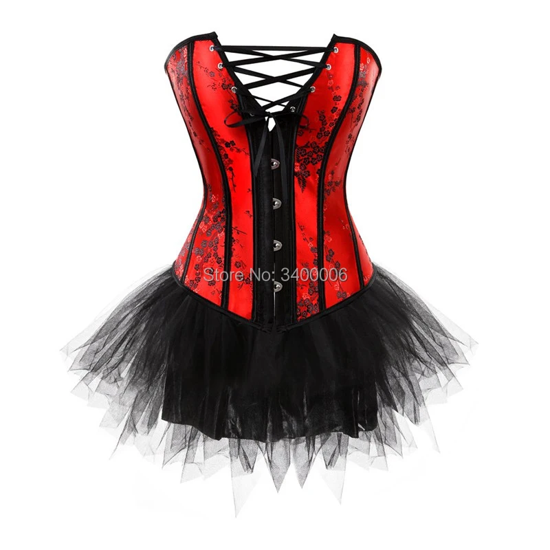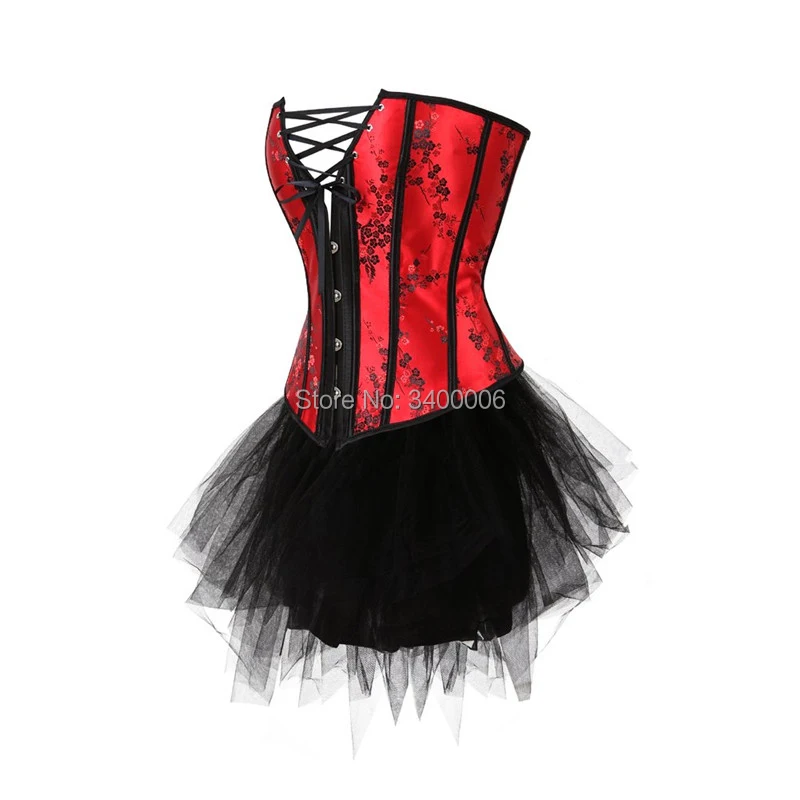 Корсеты и бюстье Бурлеск корсет и юбка пачка комплект кружевное белье платье с корсетом в готическом стиле Корректирующее белье Хэллоуин плюс размер