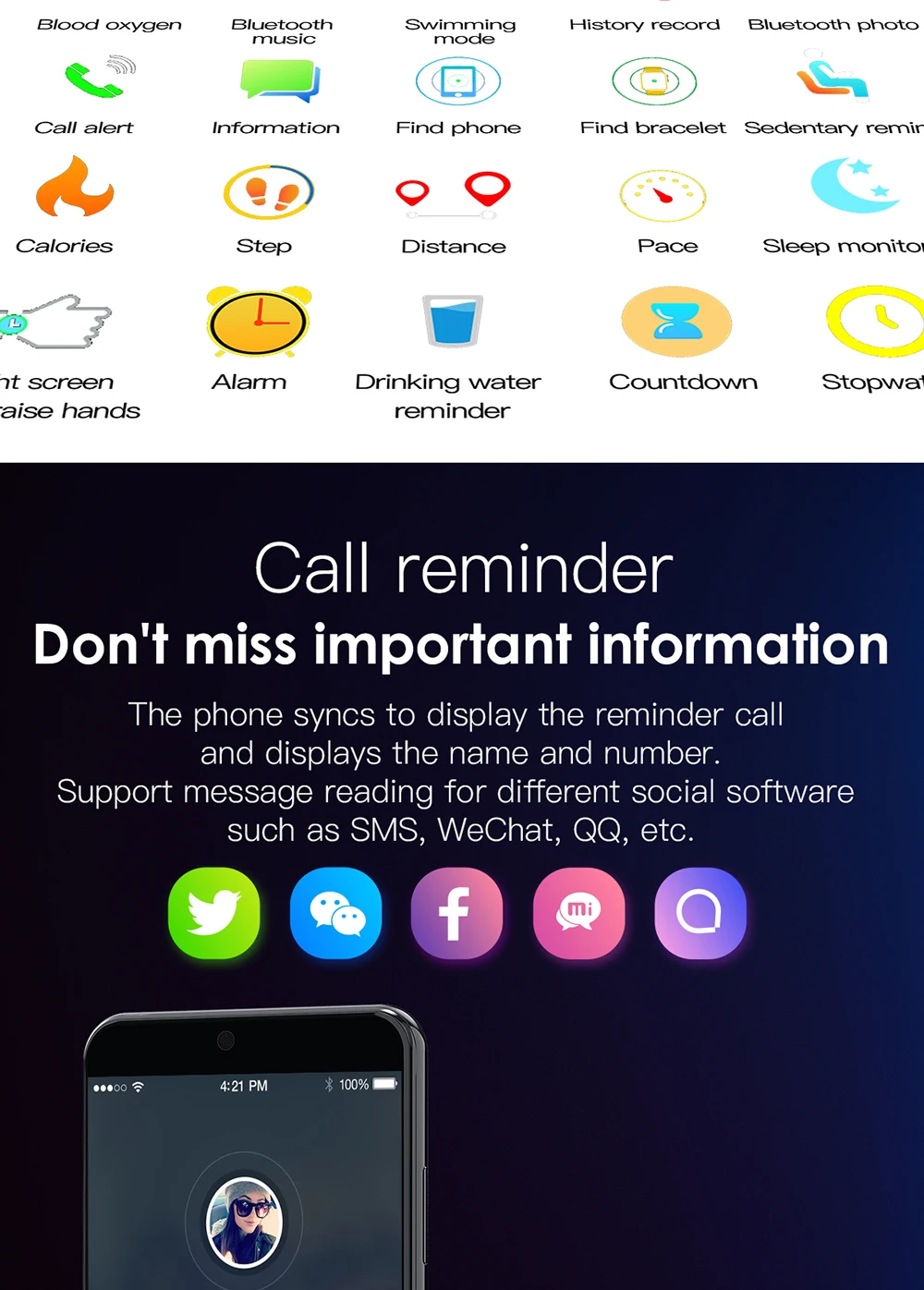 Bluetooth push: синхронный дисплей входящего звонка, SMS, WeChat, содержимое сообщения QQ