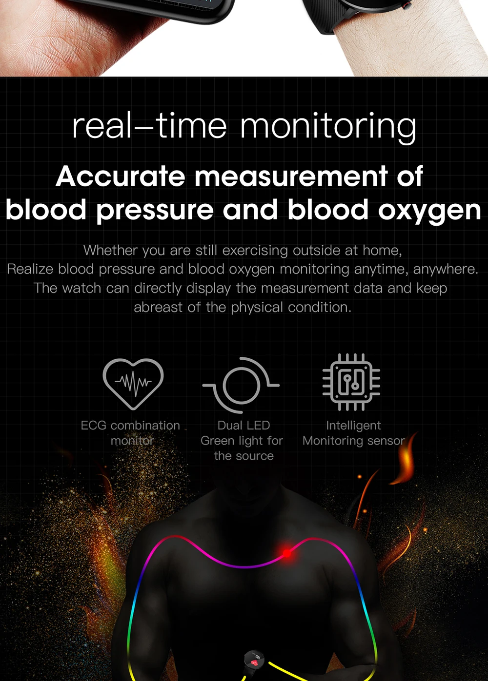 ЭКГ, обнаружение сердечного ритма: Поддержка непрерывного сердечного ритма, измеряется каждые 10 минут