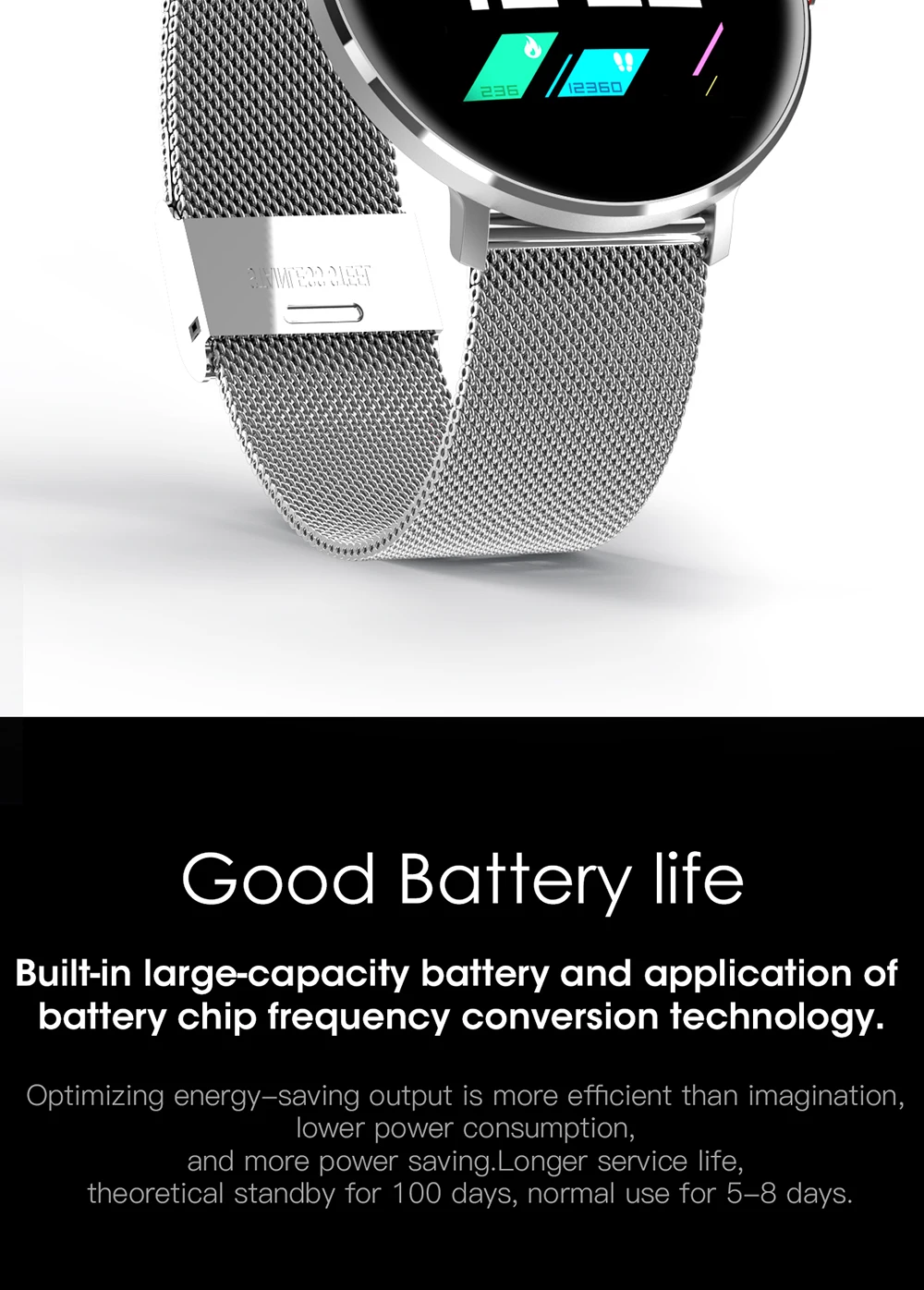 Другие особенности: мультиспортивный режим, Bluetooth управление музыкой, Bluetooth фото, история, Поиск телефона, калорий, темп, напоминание о сидячем положении, поворот экрана запястья, напоминание о напитках, будильник, обратный отсчет, секундомер.