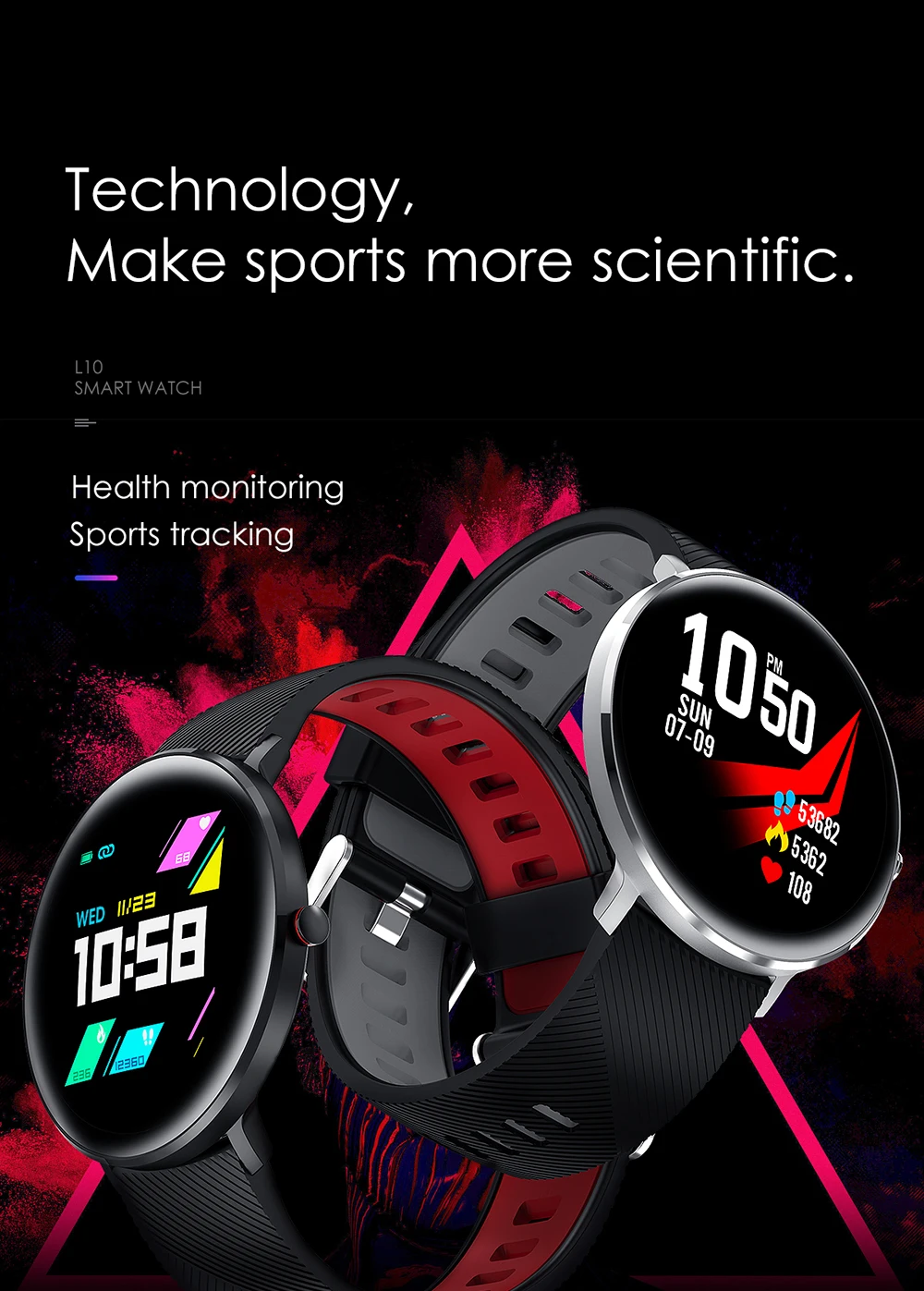Часы L10 могут отображать несколько языков: китайский,Английский (по умолчанию), русский, испанский, немецкий, итальянский, французский, португальский, японский, арабский, тайский