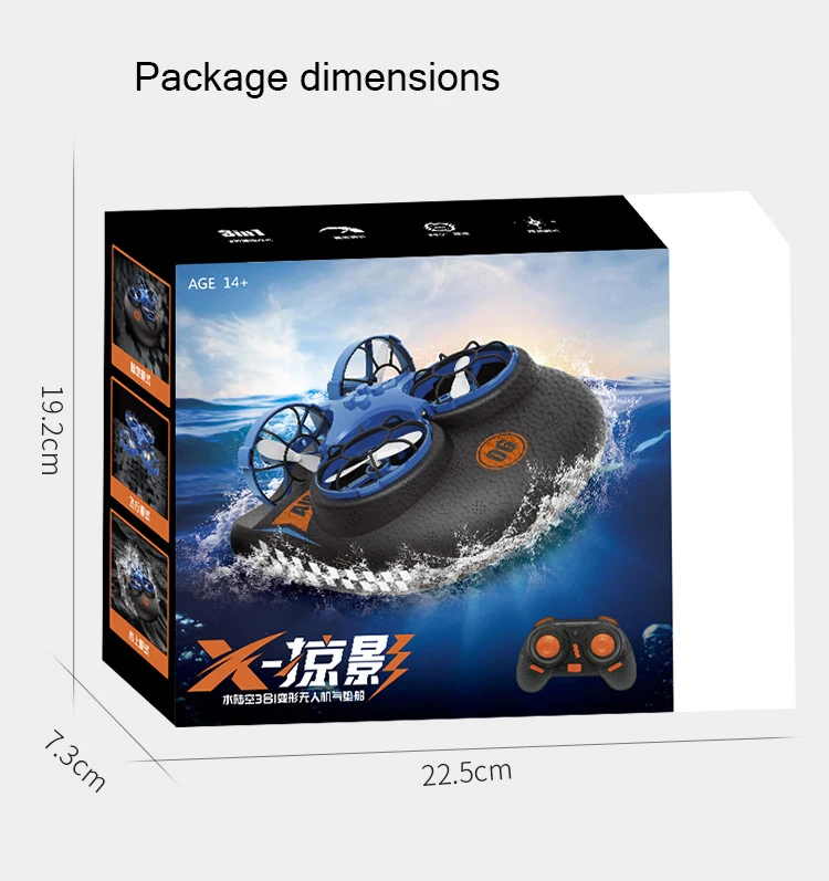 Описание: Цвет: синий и оранжевый Материал: АБС-пластик, оборудование и электроника Частота: 2,4G Канал: 4CH Квадрокоптер Батарея: 3,7 V 350mAh литий-полимерный Батарея (все указанные аккумуляторы входят в комплект поставки) Время полета: около 6 минут Время зарядки: 40 минут Режим передатчика: режим 2 (левая дроссельная заслонка) Передатчик Мощность: 2x1,5 V AA батарея (не входит в комплект) Расстояние R/C: около 50 метров Размер квадрокоптера: 13x15x5 см Посылка Размеры: 25,5x19,3x7,3 см Особенности: -Режим Полета 3 в 1, простая эксплуатация, свободное сочетание самолетов и пенопласта, для достижения различных игр в море, на суше и в воздухе, переключение режимов простое в использовании, не ограничиваясь окружающей средой. -Воздушный режим полета (только самолет), режим вождения на суше, серфинг над водным режимом. -Съемный самолета. Самолет и основание могут быть разделены и свободно соединены. -Самолет с базой может скользить по земле и испытать идеальное ощущение дрейфа высокоскоростного автомобиля с дистанционным управлением. -Самолет с базой также может кататься на поверхности воды, испытать на пульте дистанционного управления лодки скачущую воду. -Безголовый режим, самолет не нужно регулировать положение самолета перед полетом. -Функция возврата одной кнопкой. Самолет может автоматически вернуться в пункт назначения. -Автоматическая сигнализация и функция автоматической посадки. Когда напряжение низкое, он будет оповещать 30-60 секунд заранее, что еще больше повышает безопасность полета. -Самолет имеет 3 уровня скорости полета для переключения, которая может сделать больше удовольствия с летящим. -Аккумулятор большой емкости 3,7 V 350 мА/ч, Легко Подключаемый модуль структура батареи, более долгий срок работы от аккумулятора до 6 минут, легкая установка. -Высокоскоростная зарядка через USB, батарея с защитной панелью, при полной зарядке Автоматическое отключение питания; -2,4 ГГц Технология, принятая для защиты от помех. -4 канала, который может сделать Ascend, спуск, вперед, назад, левая бока, правая бока и прокатки 360 °. -6 оси гироскопа, который может иметь более стабильный полет и быть простым в управлении. -Фюзеляж квадрокоптера изготовлен из высокопрочного и стойкого инженерного пластика, легкого и прочного сопротивления. Функция: вверх/вниз, вперед/назад, поворот влево/вправо, боковой полет, воздушный режим полета (только самолет), режим вождения на суше, серфинг над водным режимом, 3 уровня скорости полета, Безголовый режим, автоматический возврат одним нажатием кнопки, 360 °, автоматическая сигнализация Посылка включает в себя: 1 х Квадрокоптер 1 х Нижняя база 1 х пульт дистанционного Управление 1 х USB Зарядное устройство Запасные пропеллеры-4 шт. 1 х DIY Стикеры 1 х Отвертка Руководство пользователя (1 шт.)