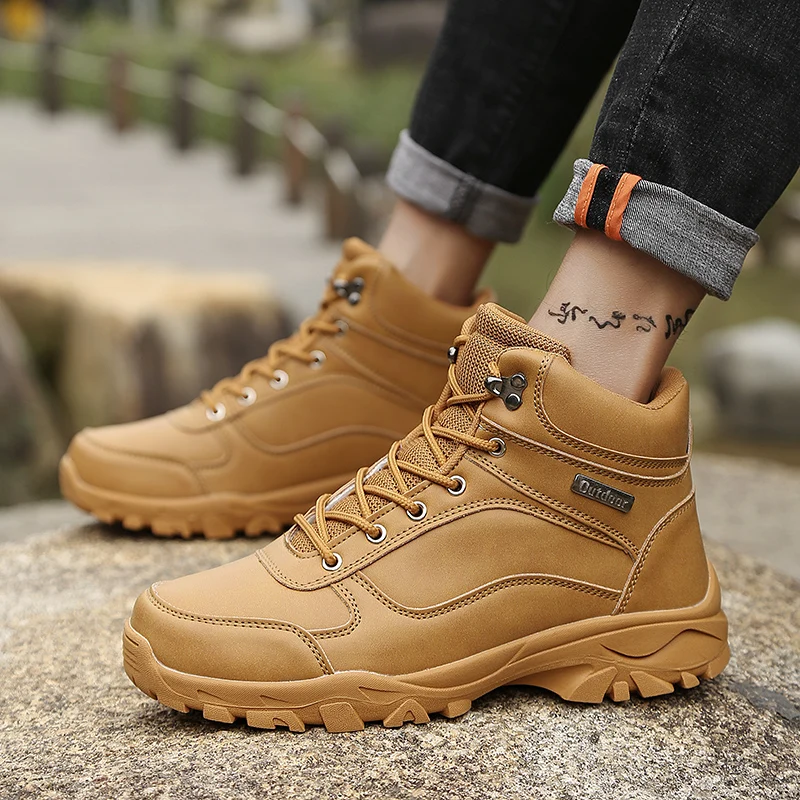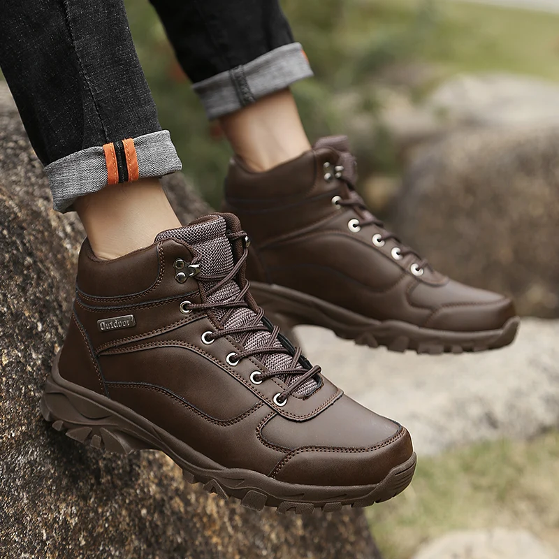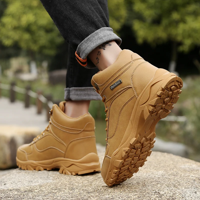 Мужские уличные треккинговые ботинки, качественные кожаные мужские кроссовки с высоким берцем, туристическая прогулочная альпинистская горная тропа, треккинговые охотничьи ботинки