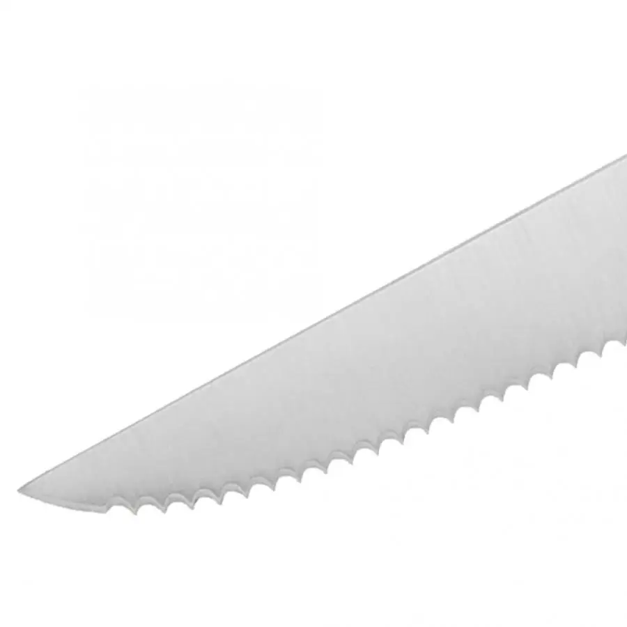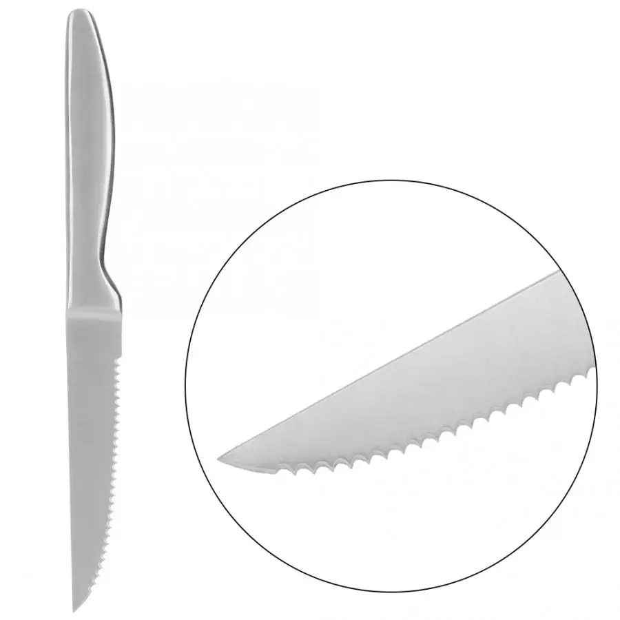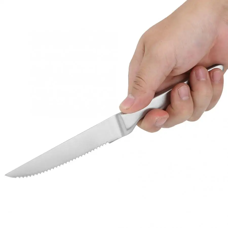 Он изготовлен из пищевой нержавеющей стали, безопасной в использовании, нетоксичной и безвкусной, здоровой и охраны окружающей среды. Поверхность полированная, гладкая, красивая и практичная, не ржавеет. Использование зубчатого лезвия, резкий край, резка стейка очень удобна. Конструкция ручки эргономична, удобна в захвате и обеспечивает безопасное расстояние между пальцем и лезвием. Подходит для ужина, вечеринок, свадеб, барбекю, поваров, деловых кухонь, является отличным подарком для близких и друзей.