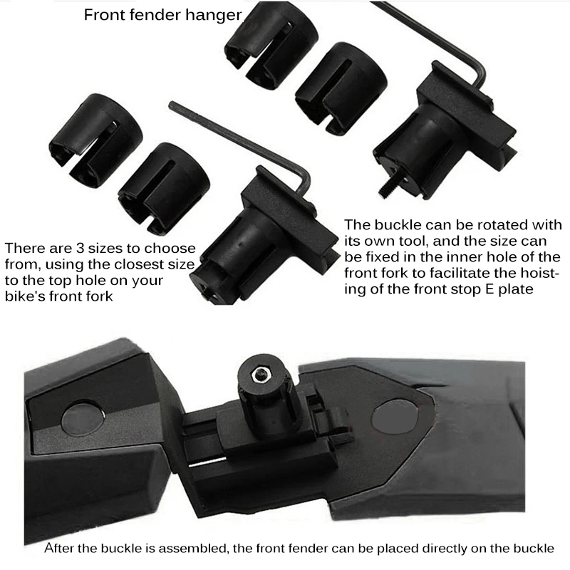 Type: Bike Fender Quantity: 2PCs Material: Plastic Color: Black/Grey/Blue Front fender caliber:17-25.4mm Tailgate caliber:25.4-34.8mm Size: 56*7.0cm/22.0*2.8” Weight: 10.0g/10.6oz Package: 2* Bike Fender