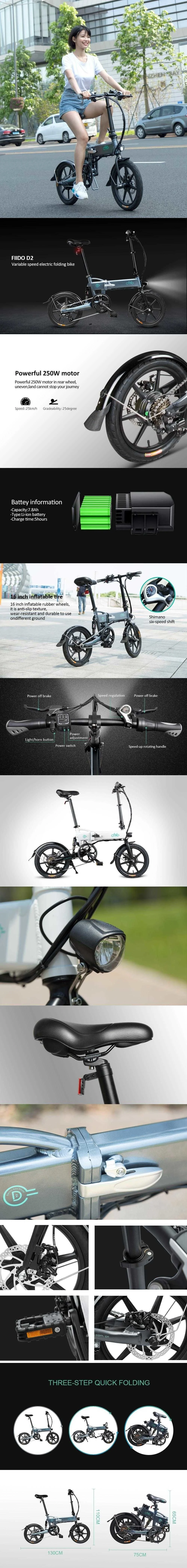 FIIDO D2S взрослый Электрический велосипед, два колеса, электрические велосипеды с переменной скоростью, 16 дюймов, 250 Вт, Электрический скутер, складной для девочек