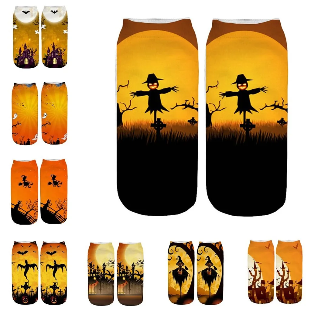 Повседневные рабочие деловые носки 3D Хэллоуин с принтом в виде тыквы средние спортивные носки
