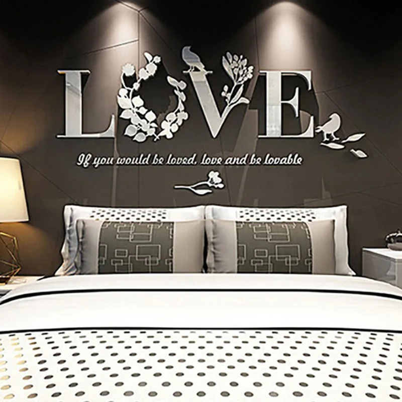3D съемное сердце, художественная роспись «сделай сам», декор для гостиной, черное/Белое Зеркало, любовь, наклейка на стену, украшение на стену, мода