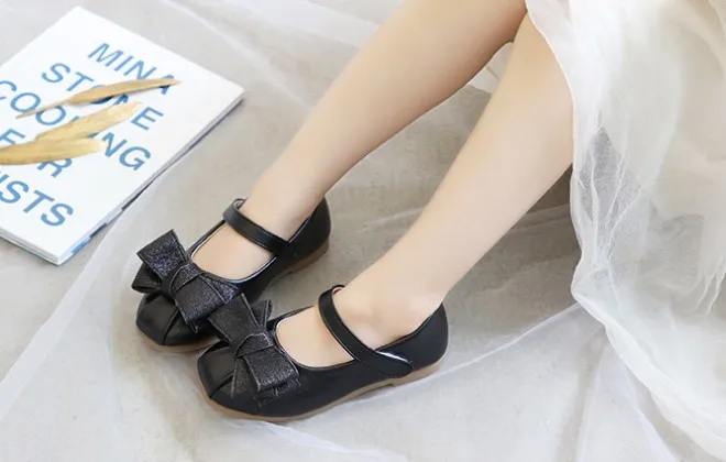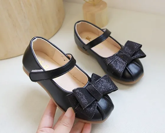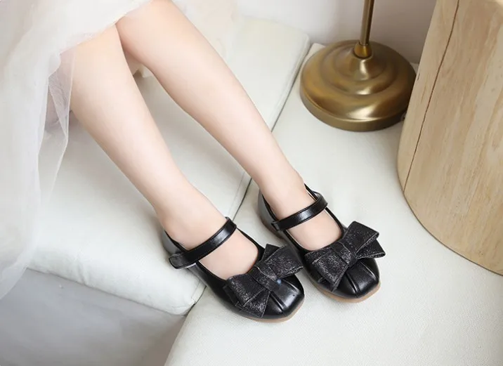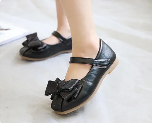Новейшая Осенняя обувь из искусственной кожи для девочек; Модная детская обувь принцессы с бантом на мягкой подошве; Детская танцевальная обувь; 21-36