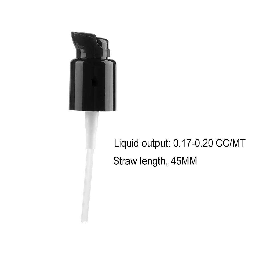 Технические характеристики: 20 калибра Цвет: черный Материал: pp Выход жидкости: 0,17-0,20 куб. См/мт Характеристики: толстый и прочный, прочный и устойчивый к падению, может быть переработан Длина соломы: 45 мм Область применения: подходит для различных серий эмульсии, жидких тональных продуктов Посылка включает в себя: 1 шт. насос для замены жидкого основания