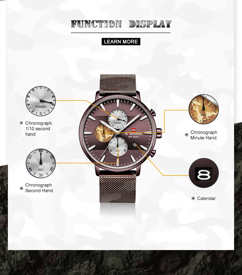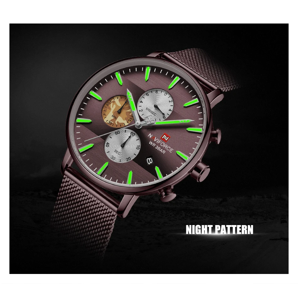 Нижнее белье высокого качества с ремешком -Материал корпуса: нержавеющая сталь -Материал ремешка: высокое качествоРемень Технические характеристики -Материал корпуса: сплав -Диаметр корпуса: 42 мм -Толщина корпуса: 10 мм -Длина ремешка: 245 мм (в комплекте) -Ширина ремешка: 20 мм Что входит в комплект 100% NAVIFORCEАбсолютно новый 1 x аналоговые Дата модные спортивные мужские часы