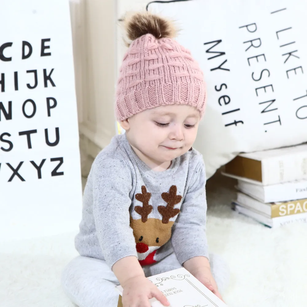 Милый Малыш Дети девочка и мальчик ребёнок Младенец Зима Теплый Вязание крючком вязаная шапка шапочка