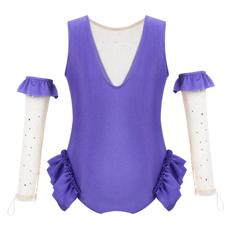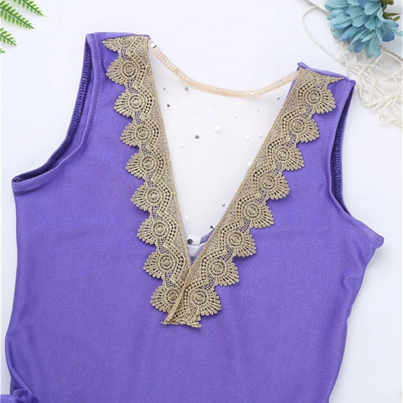 Детский маскарадный костюм на Хэллоуин для Девочек Блестящий сетчатый купальник без рукавов с v-образным вырезом на спине с золотой тесьмой + рукав для рук