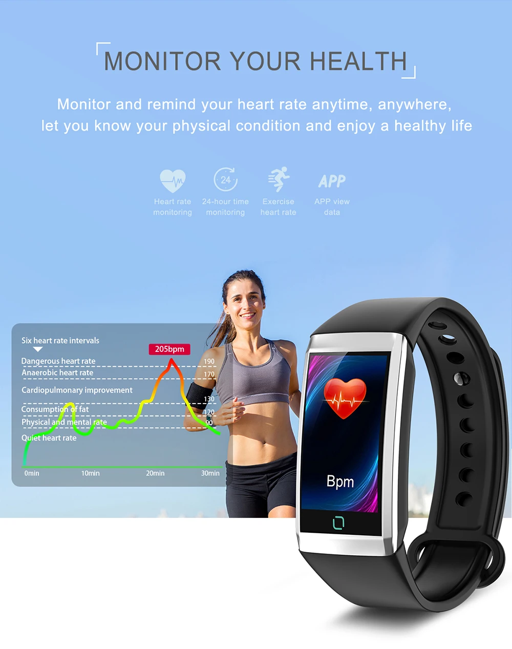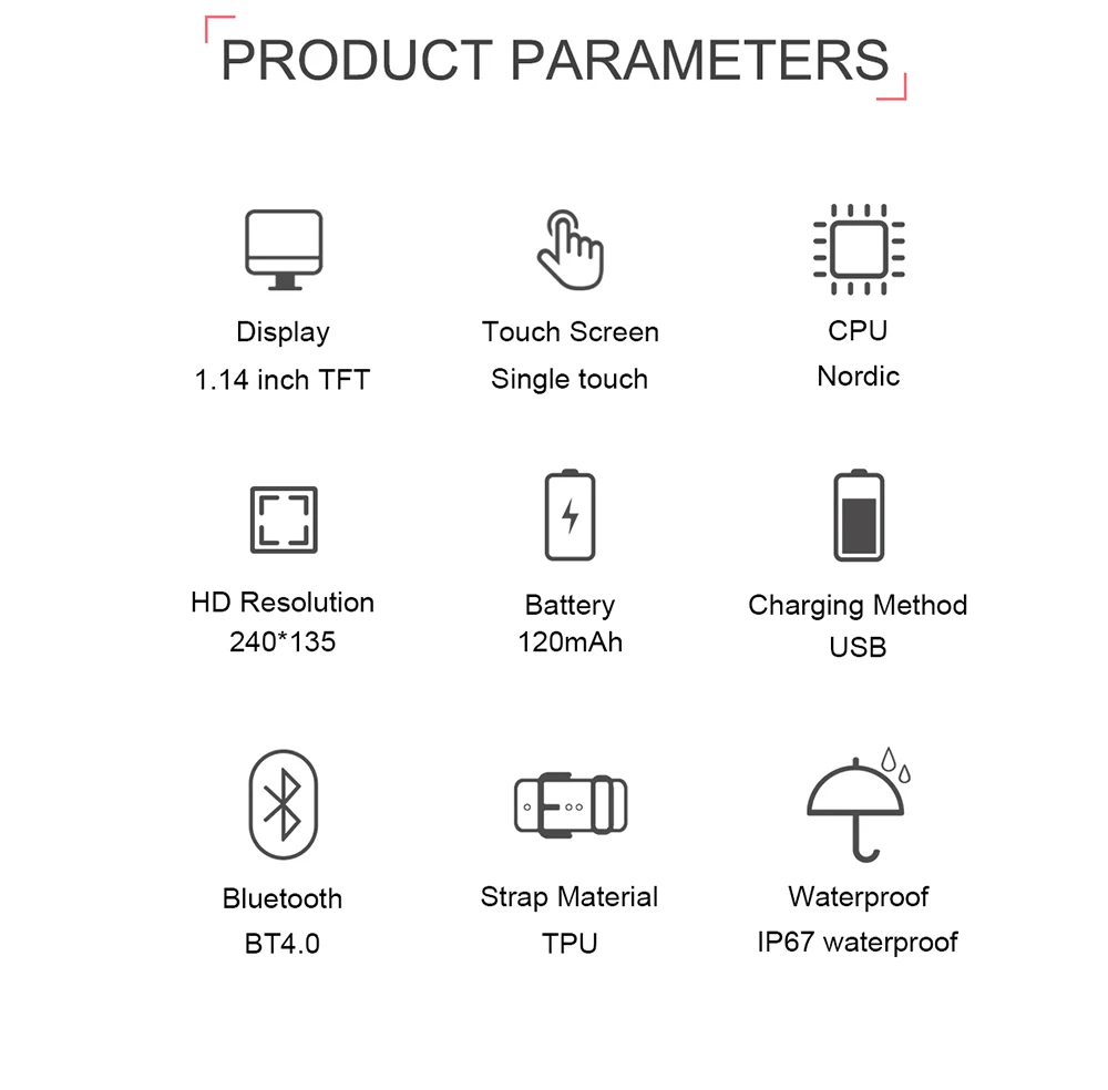 Примечание: 1. Пожалуйста, обратите внимание на совместимые системы: iOS 8,2 версии выше и Android 4,4 версии выше смартфона, Bluetooth 4,0 2. Продукт прилагается с инструкциями, пожалуйста, внимательно прочитайте его. 3. Любой вопрос, пожалуйста, свяжитесь с нами, мы предоставим вам удовлетворительное решение в течение 24 часов (за исключением наших праздников) 4. После получения часов, пожалуйста, заряжайте сначала. Потому что после длительного периода логистики часы имеют низкую батарею Перед использованием отсканируйте qr-код на инструкции, чтобы загрузить приложение и подключить его к часам с помощью приложения. 5. IP67 водонепроницаемый и пылезащитный (вы можете носить его под дождь, мыть руки, скалолазание и другие виды спорта, но не кладите его в горячую воду или плавание) 6. Носимые устройства контролируют работу человека с помощью электронных датчиков, и они находятся на уровне электуоники потребителя. Это нормально для определенного отклонения. Пользователь должен объективно обрабатывать данные. Пожалуйста, не сравните с больничным оборудованием для чтения, это не медицинское устройство Основные функции: Мульти экстремальных видов спорта ● В настоящее время восемь видов спорта: бег, прогулки, баскетбол, бадминтон, понг, плавание. Напоминание Функция ● Поддержка звонков, SMS (сообщения, QQ, Wechat, Skype, Facebook, Twitter, Line, Whatsapp). Часы будут напоминать вам вибрацию. Другое функции: ● Монитор сна, монитор сердечного ритма, монитор движения (шаги, расстояние, калории), шагомер, синхронизация сообщений, входящий вызов, будильник, вибрация Приложение Язык: ● Китайский, английский, французский, немецкий, итальянский, японский, корейский, русский, испанский, португальский, арабский Смарт-браслет: ● Китайский, английский