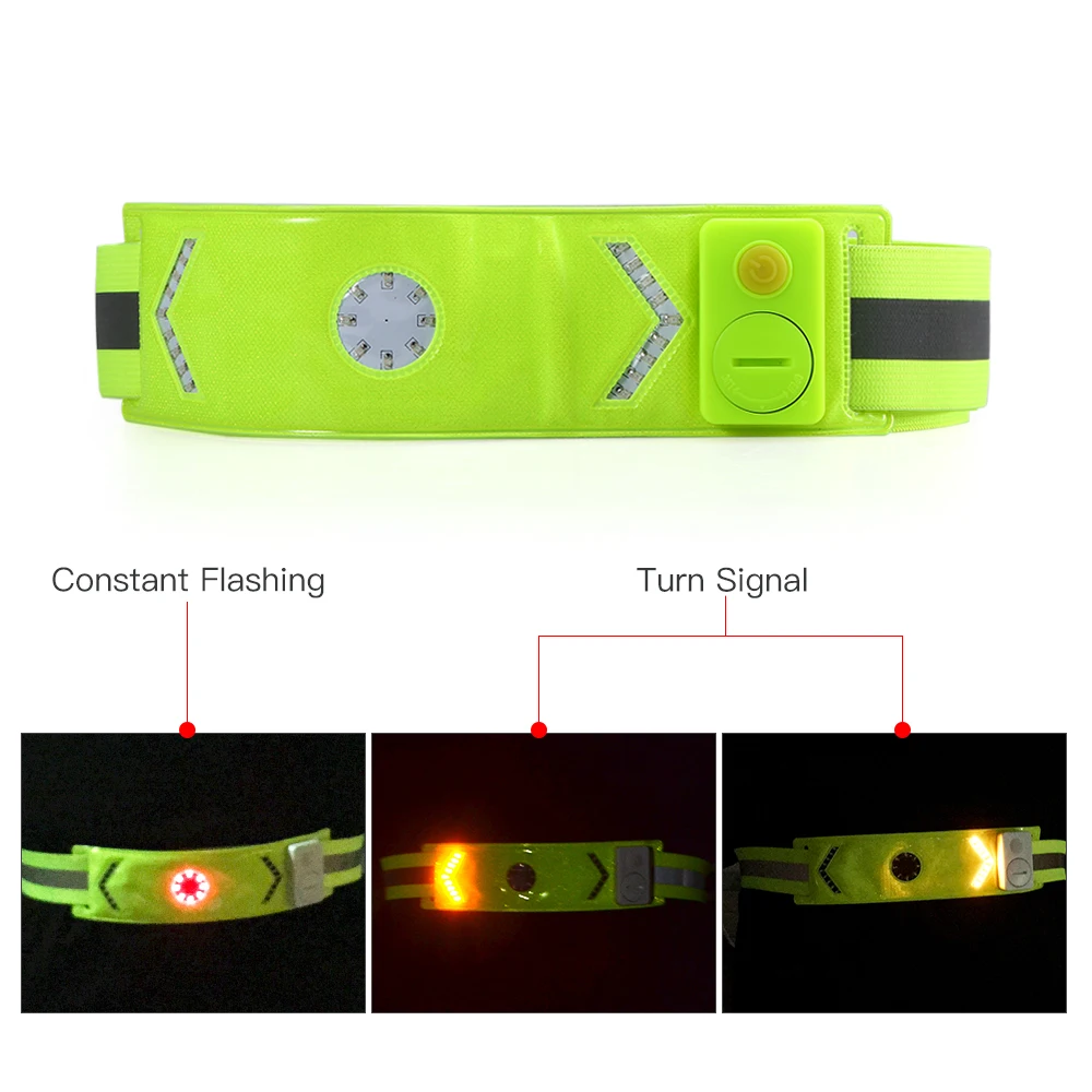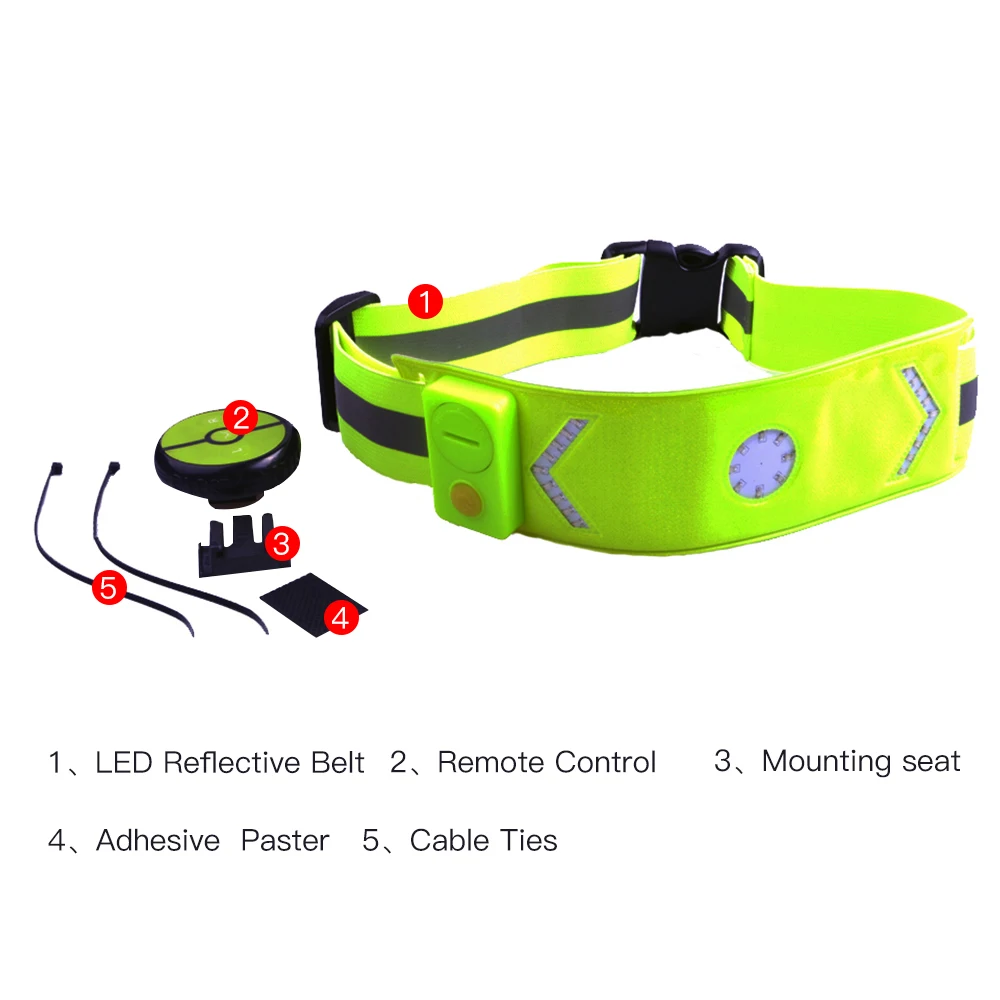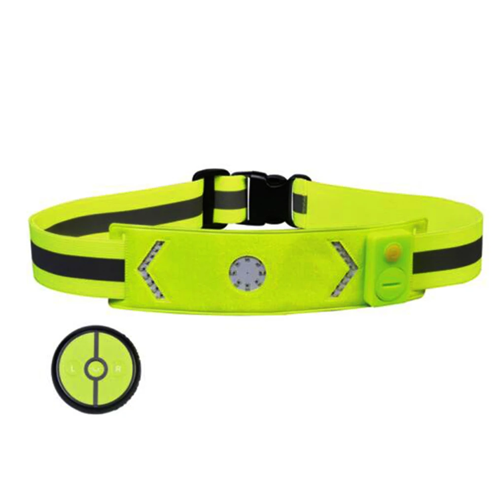 This LED reflective belt is wireless remote controlled, front and rear wearable. Standard fluorescent yellow band is highly visible from 360 degree, ensure safety when night jogging or cycling. Adjustable buckle and elastic band fit for different size of waist and easy to wear.