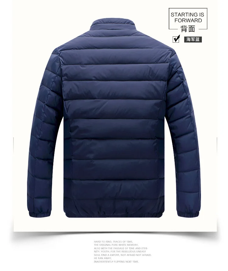 Тонкая мужская куртка с воротником без застежки на молнии, тонкий толстый пуховик, одежда для папы, новая мужская одежда среднего возраста 2019, большие размеры