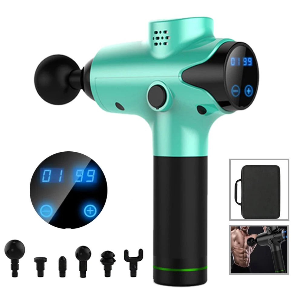 Помогает облегчить мышечную боль и жесткость с 6 взаимозаменяемыми насадками на голову.