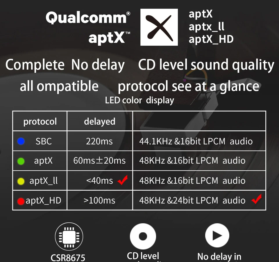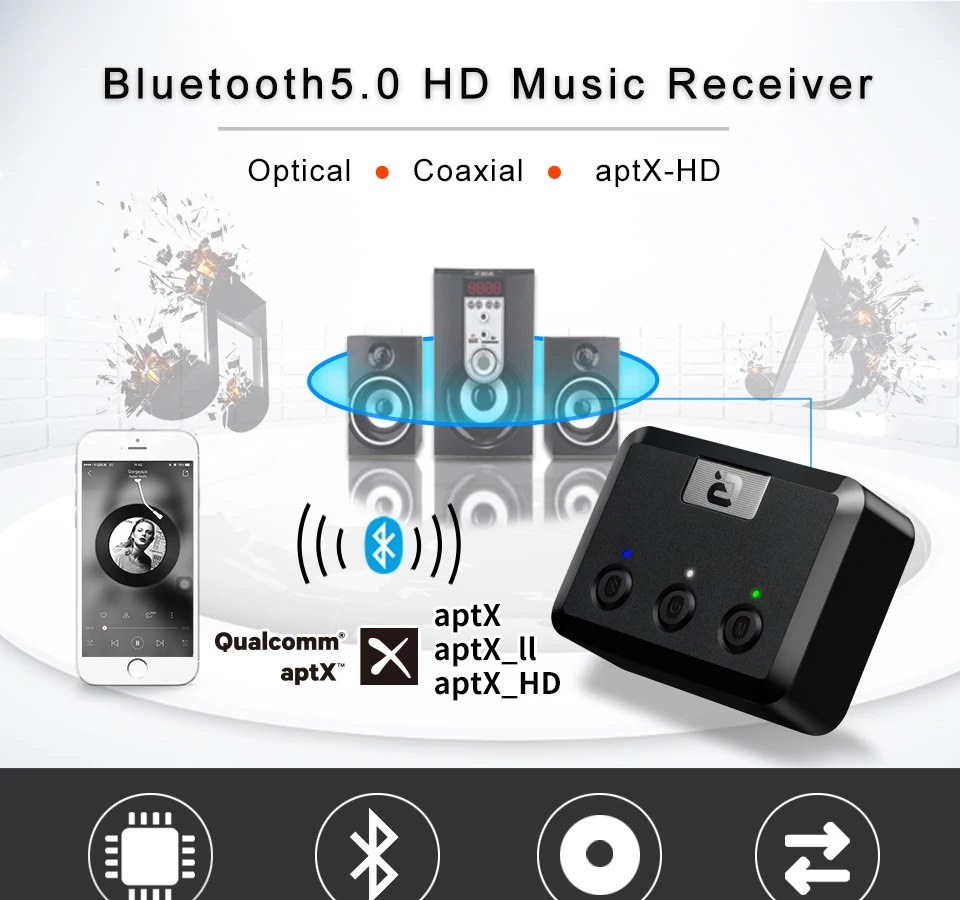 1> новейшая версия Bluetooth 5,0: Совместимость со спецификациями версии 5,0, обратная совместимость с Bluetooth 4,2/4,1/4,0/3,0/2,0/1,0. 2> Поддержка Qualcomm®AptX™Низкая задержка, aptX™HD AptX™Низкая задержка: технология aptX с низкой задержкой устраняет задержку звука Bluetooth, поэтому вы можете смотреть телевизор/фильм/видео и слушать звук высокой четкости в идеальной синхронизации. AptX™HD: 24 бит 48 кГц HD аудио передача позволяет наслаждаться высоким качеством звука. Помимо CD качества звука. 4> Универсальная совместимость: Этот приемник Bluetooth 5,0 может быть подключен к любым приемникам и любым динамикам с оптическим/коаксиальным/стандартным разъемом 3,5 мм или 2 портами RCA, идеально подходит для домашних кинотеатров, стереосистем и автомобильных стереосистем, также подходит для iPhone, iPad,iPod Touch, смартфонов и устройств Android. 5> поток музыки на 2 динамиках одновременно: С вариантами подключения 3,5 мм и 2RCA вы можете наслаждаться музыкой без проводов на 2 динамиках. 6> дальнее беспроводное соединение: Беспроводной bluetooth-адаптер поддерживает подключение до 25 метров, контролируя воспроизведение музыки на большом расстоянии. 7. Что в коробке Аудиокабель 3,5 мм-1 шт. 1 кабель для зарядки Micro-usb 1 x Руководство пользователя 1 x MR235 аудио Получение