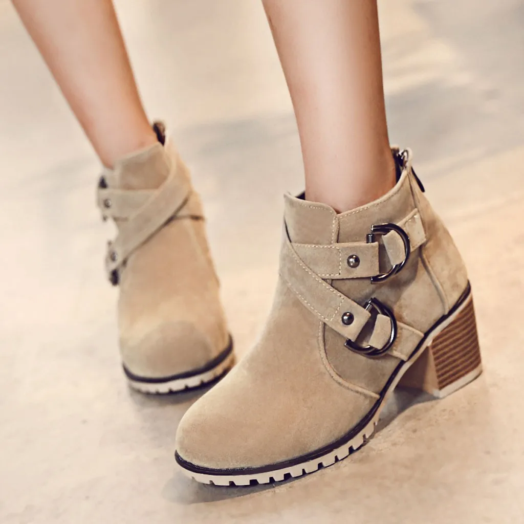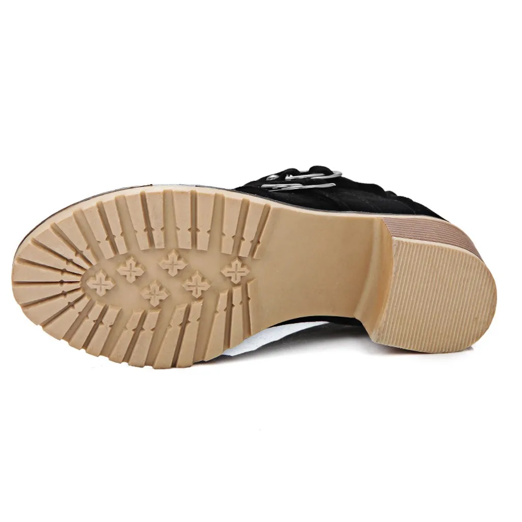 Женские ботинки до середины икры; армейские ботильоны с шипами; обувь на низком блочном каблуке