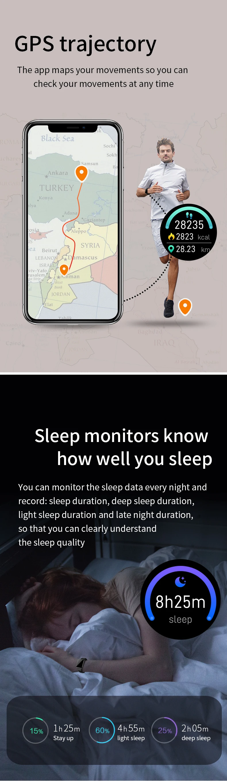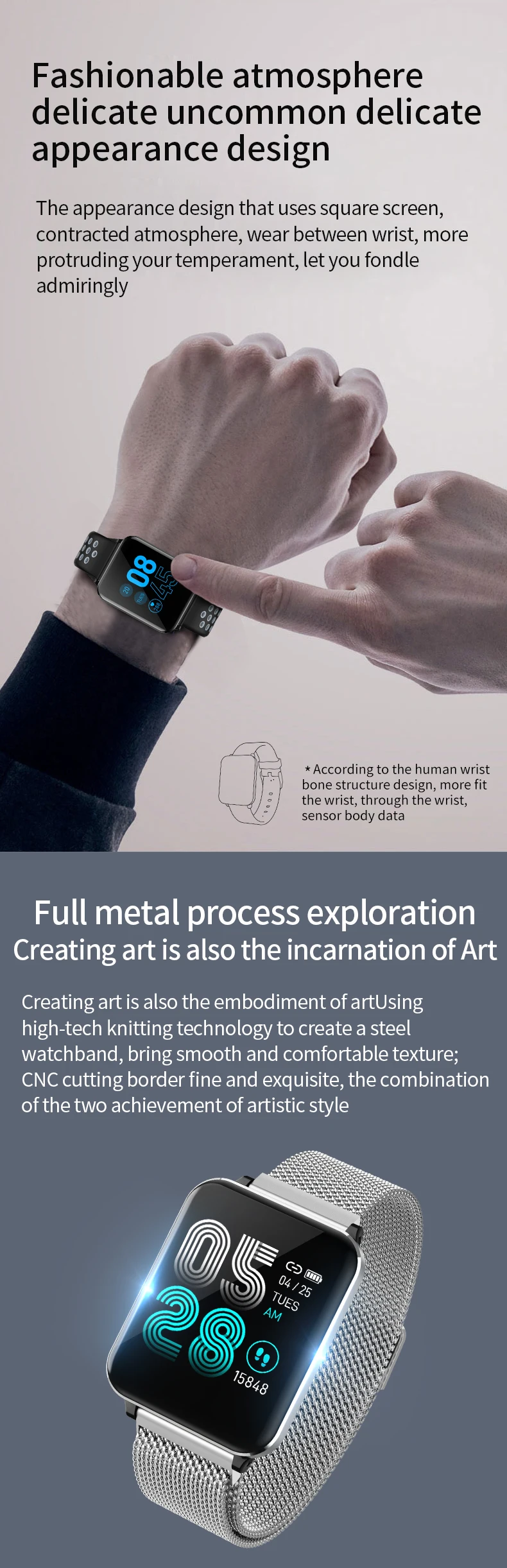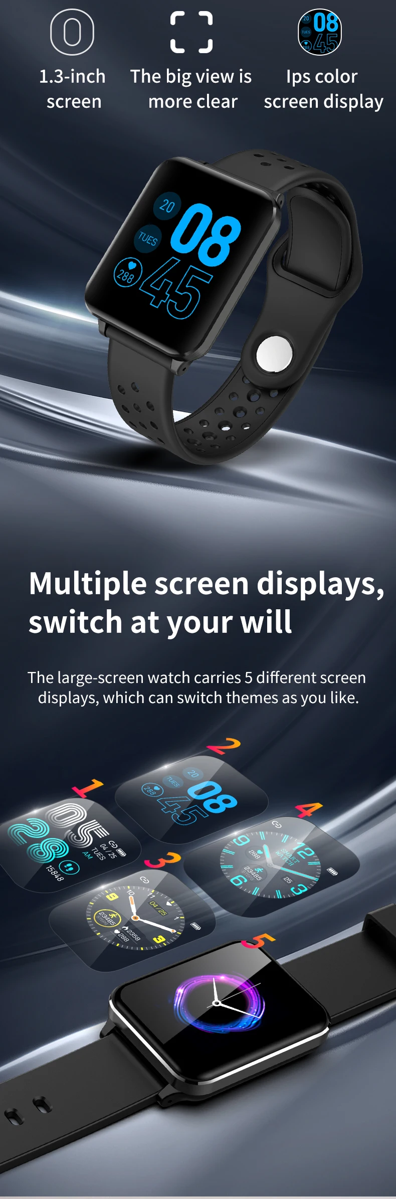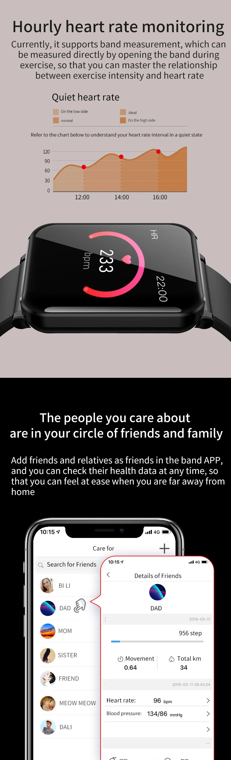 Особенности: 1. Пульс и кровяное давление (Интегральный мониторинг сердечного ритма). 2. Отображение времени/часов, подсчет шагов, калории, расстояние, время сна, секундомер, мобильный телефон, регулировка яркости, выбор 5 циферблатов. 3. Стандартная спортивная функция (подсчет шагов, расстояние, калории) мульти-спортивный режим (альпинизм, прогулки, баскетбол, бег, настольный теннис, Велоспорт, плавание, бадминтон, футбол). 4. Мониторинг сна (время сна, качество сна, время ожидания). 5. Напоминание о звонках, SMS напоминание, QQ напоминание, Wechat напоминание, Skype, Facebook, whatsApp напоминание. (Сохраните 3 записи истории сообщений). 6. Найдите мобильные телефоны, браслеты, секундомеры. 7. Будильник/лекарство/встречи/сидячий/питьевой воды напоминание. 8. Траектория gps. 9. Регулировка яркости экрана. 10. Удаленная фотография (встряхните, чтобы сделать фото). 11. Движение членов семьи и друзей, взаимная проверка данных измерений. Технические характеристики: Экран: 1,3 дюймов ips цветной экран Разрешение 240*240 Системные требования: Android 5,0 или выше, iOS 9,0 или выше Версия Bluetooth: BLE 4,0 Главный чип управления: NRF52832 Память: 64 Мб Чип PPG: HRS3300 Емкость аккумулятора: 200 мАч Мотор: встроенный, напоминание о вибрации Водонепроницаемый класс: IP67 Языки поддержки приложения: китайский (упрощенный, традиционный), японский, английский, французский, немецкий, итальянский, испанский, русский, португальский, корейский, малайзийский Язык поддержки браслета: китайский (упрощенный), английский Датчик: трехосевой датчик силы тяжести Режим зарядки: магнитная поглощающая зарядка Размер упаковки: 158*80*36 мм/6,22*3,14*1,41'' Цвет: черный, черный, красный, черный, серый