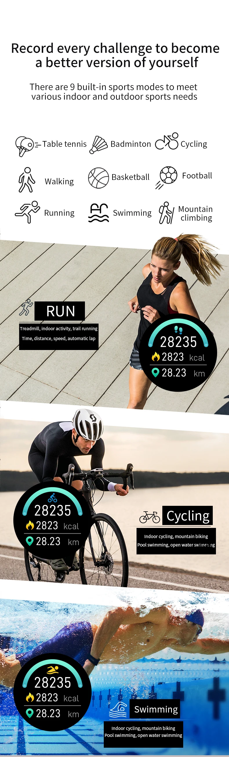 Заводская цена смарт-браслет Смарт-браслет с Bluetooth Поддержка Moutaineering Пеший Туризм пинг понг Bicyling для плавания для игры в бадминтон
